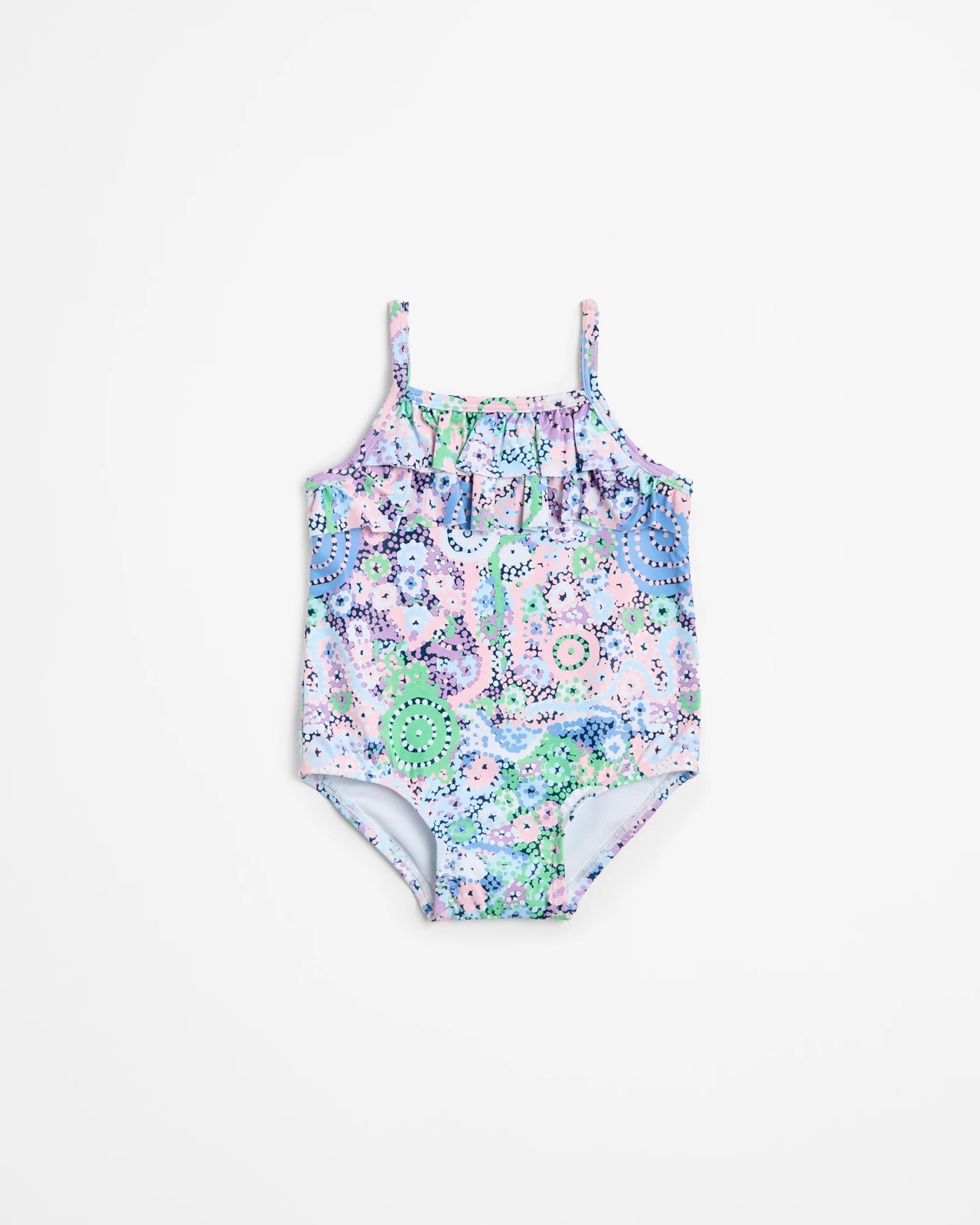 Introducing our Warlukurlangu x Target collaboration. Beautiful Indigenous art created by Topsy Napurrurla Fisher. The stories she painted are creation stories which are closely associated with her traditional country, the features and animals found on that land. Printed on boys swimwear and accessories.