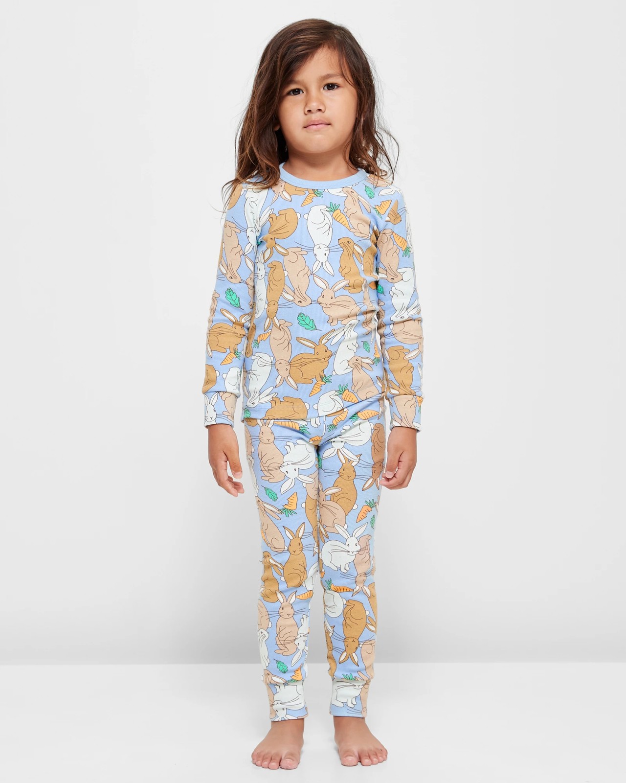 Complement your family's Easter celebrations with our adorable Family Matching Boys Junior Easter Bunny Cotton Rib Pyjama Set. Made from soft and stretchy cotton rib, this 2-piece set features a charming blue all over Easter Bunny print. The crew neck and long sleeves with ribbed cuffs offer a comfortable fit, while the straight hem adds a stylish touch. The matching pants have an elastic waistband and ribbed cuffs for easy wear. Available and sold separately as a family matching set, these pyjamas are perfect for creating lasting memories and cosy nights in. Embrace the joy of Easter with this delightful pyjama set!