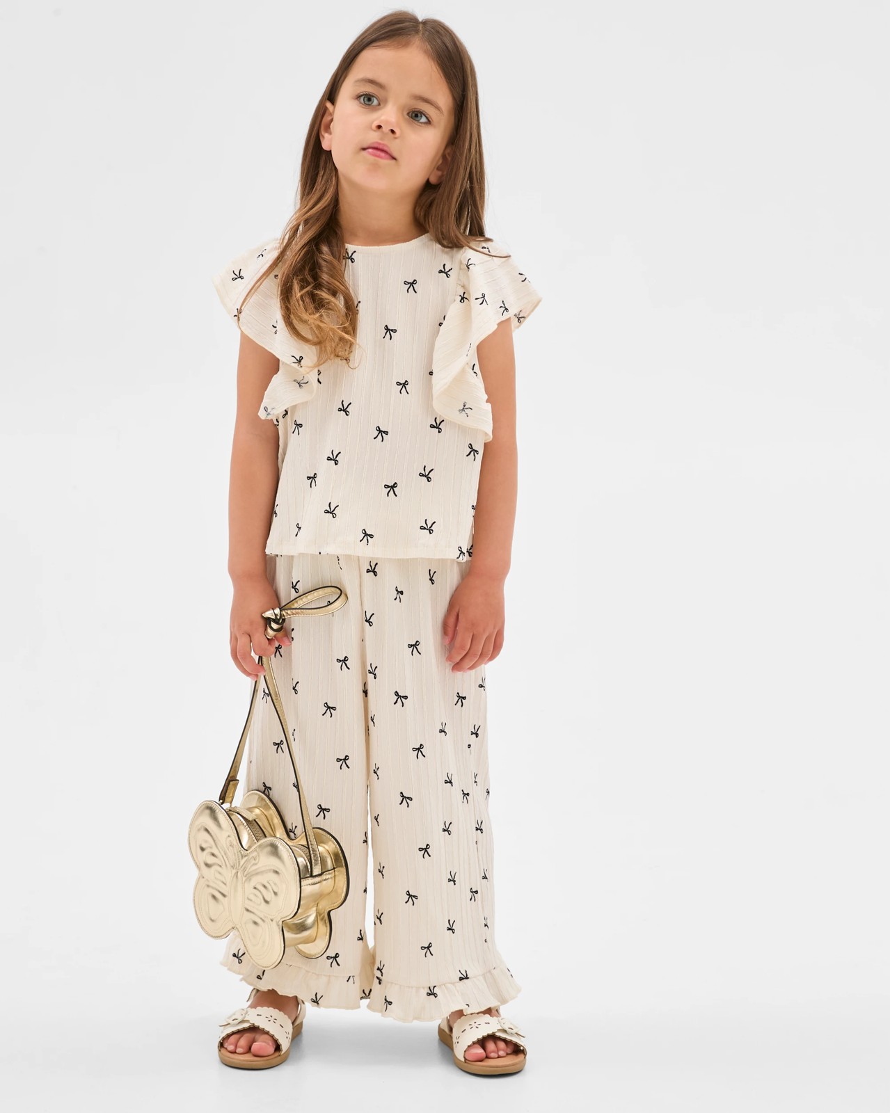 Step up your little one's wardrobe with these Fashion Textured Pants, designed for girls who love both comfort and style. The textured fabric and wide leg cut give these trousers a modern flair, while the stretchy fit ensures your child can play and move with ease. The cropped ankle length and delightful frilled hem add just the right touch of charm, making every outfit feel special. With a comfy elastic waistband and drawcord, dressing is easy and secure. Pair these trousers with the matching top for a coordinated look that's perfect for everyday adventures or a special day out. Transform ordinary moments into something memorable—treat your child to a fresh, joyful look they’ll be excited to wear time and again.