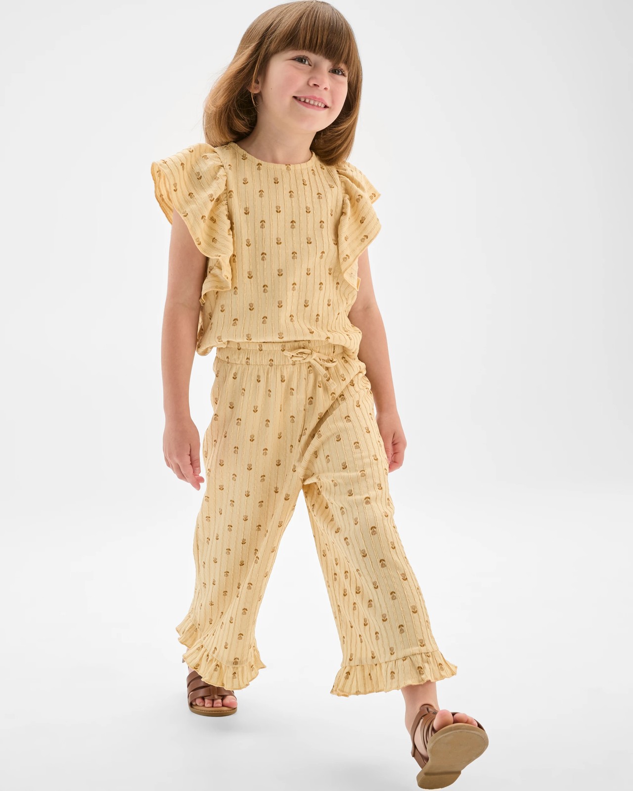 Step up your little one's wardrobe with these Fashion Textured Pants, designed for girls who love both comfort and style. The textured fabric and wide leg cut give these trousers a modern flair, while the stretchy fit ensures your child can play and move with ease. The cropped ankle length and delightful frilled hem add just the right touch of charm, making every outfit feel special. With a comfy elastic waistband and drawcord, dressing is easy and secure. Pair these trousers with the matching top for a coordinated look that's perfect for everyday adventures or a special day out. Transform ordinary moments into something memorable—treat your child to a fresh, joyful look they’ll be excited to wear time and again.