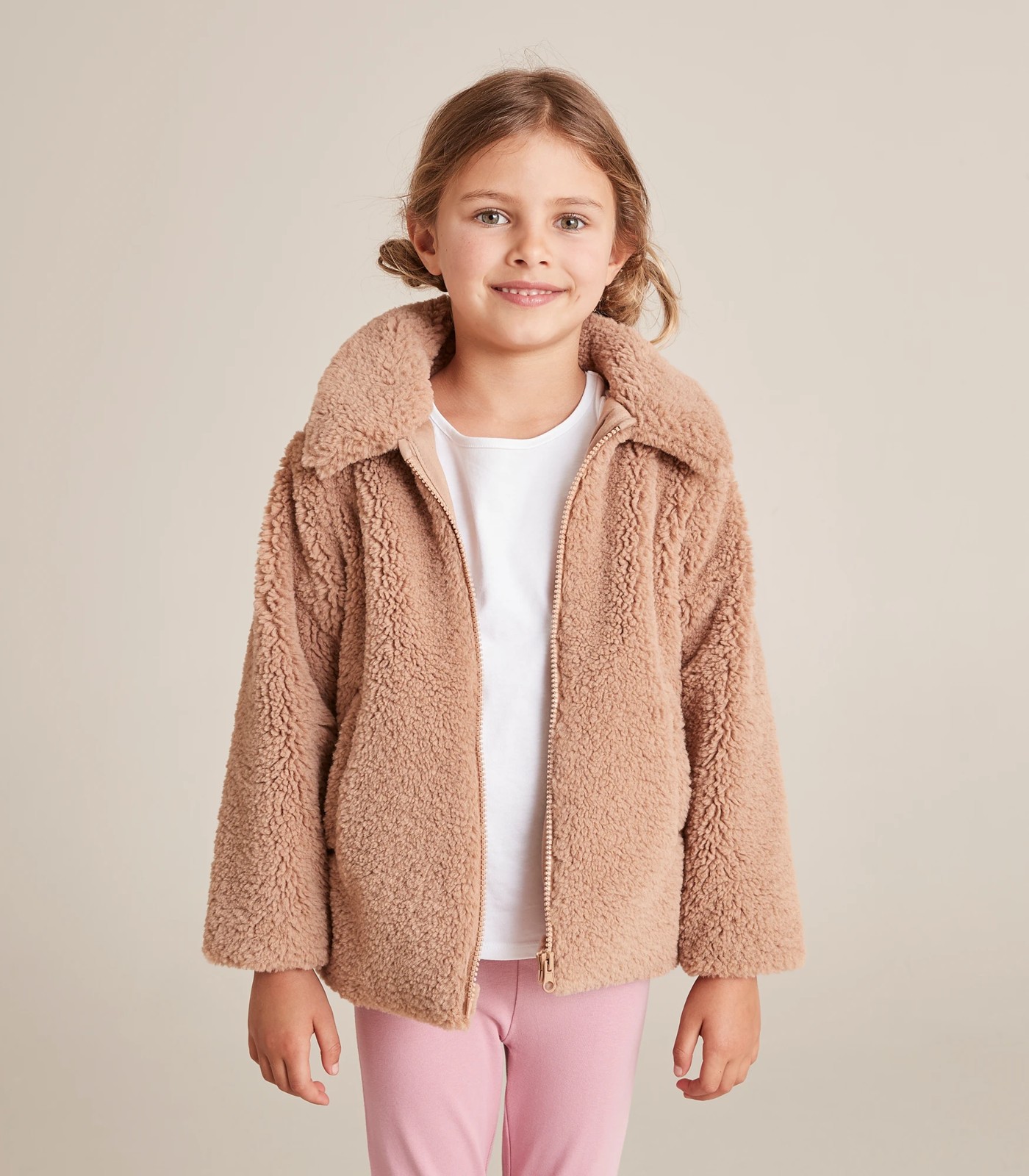 In a soft teddy fleece, with a full zip front and front pockets comes the brown Faux Fur Jacket, that is a perfect addition to her winter wardrobe.