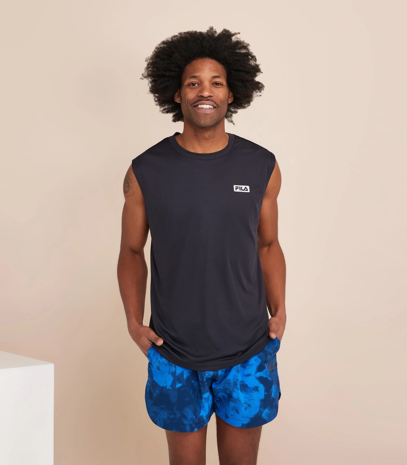 Prep for your next workout in the warmer weather and wear the Amos tank from Fila! A clean basic for every day wear. The Men's tank comes in a black colourway, has a square texture and is crafted from Polyester interlock. Featuring a Fila reflective print to left chest.