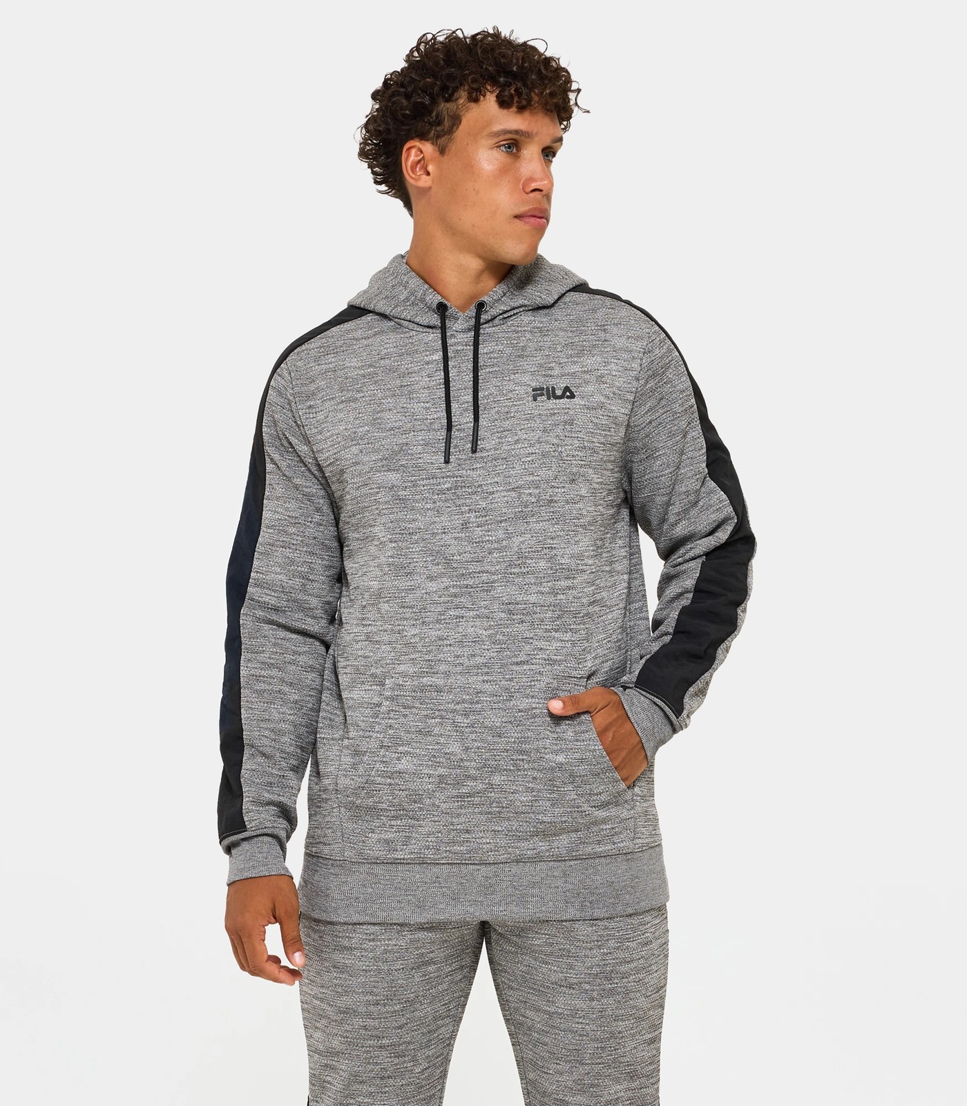 Step out in timeless, street-ready fashion with the Men's Amos tech hoody by Fila. Embrace the understated elegance of the kanga pocket and the stylish woven Nylon sleeve panels. The Fila rubber print on the left chest adds a touch of authenticity to your look. Experience ultimate comfort with the adjustable hood and ribbing on the cuffs and hem. Elevate your urban wardrobe with the versatile and functional Amos tech hoody.