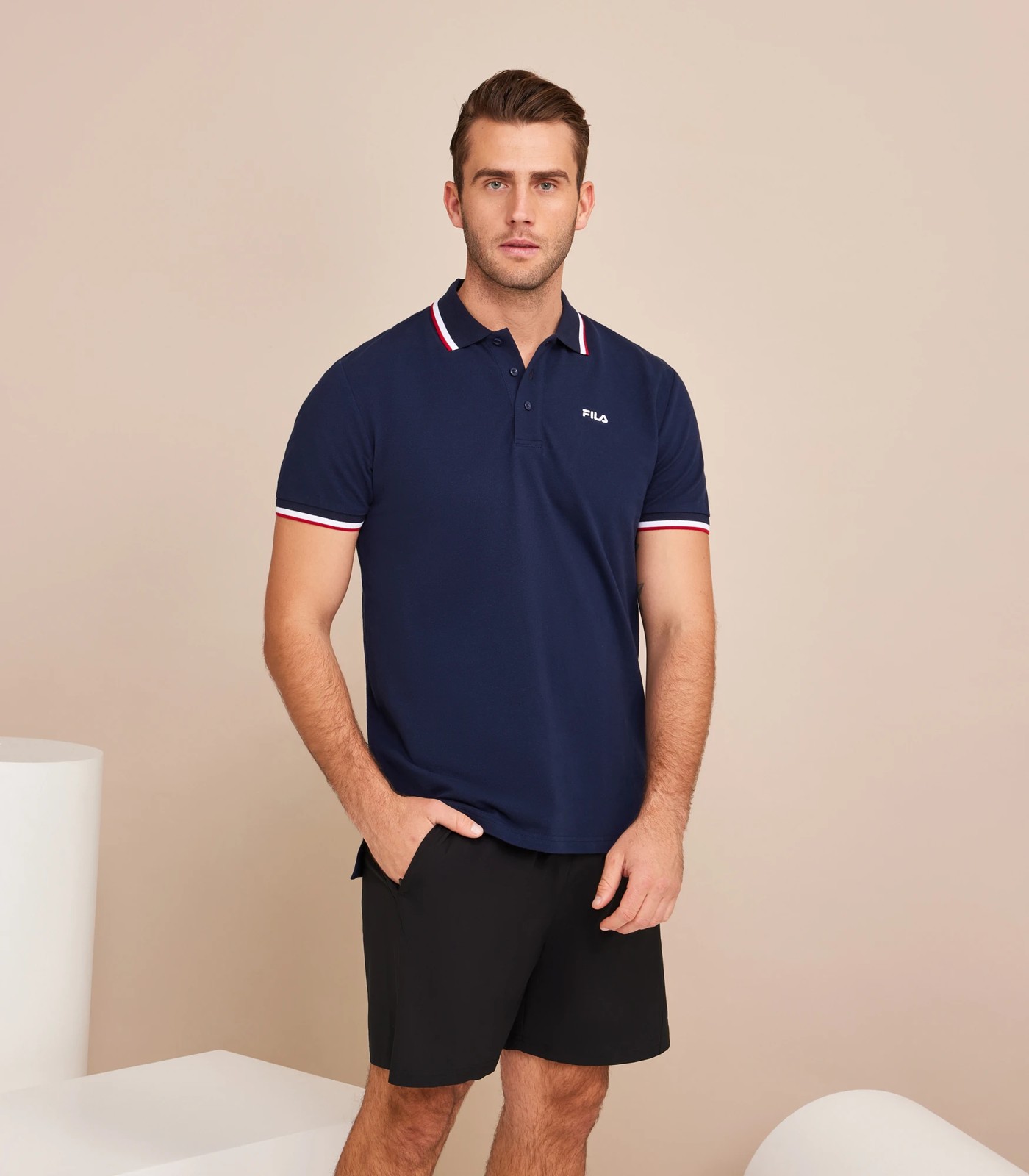 Refresh your wardrobe with the Bentley Polo from Fila. The mens Cotton Pique Polo is smart, stylish and versatile. Coming in a sapphire navy colourway, featuring an ultra small Fila embroidery to left chest and two colour rib tipping to collar and rib cuffs. Our polo has that classic button up neckline you know and love.