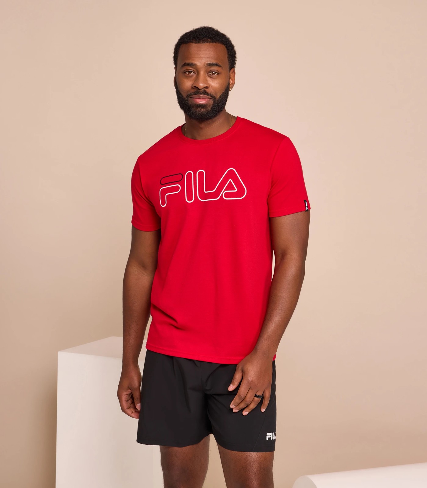Upgrade your wardrobe with our stylish Men's Fila core t-shirt. Crafted in a red colourway, this tee is designed to keep you comfortable all day long. Made from soft and durable polyester/cotton, it features a crew neckline and short sleeves for a casual look. Complete with a Fila pip on the left sleeve hem and Fila elastic back neck tape, this t-shirt offers both style and comfort. Get ready to make a statement with this must-have piece.
