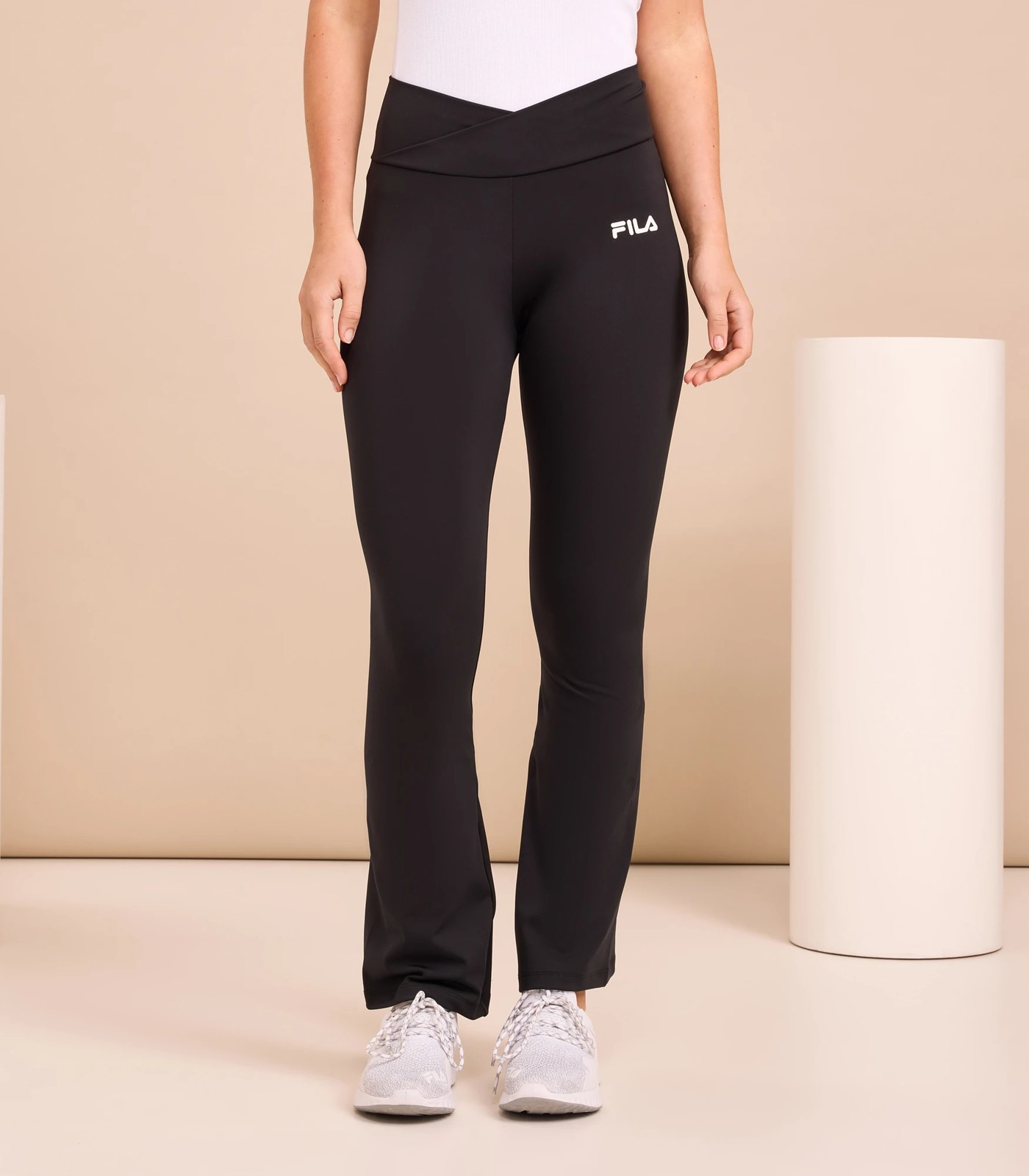 The Leah flare tight combines style and comfort allowing you to move freely and comfortable all day. Crafted from Polyester/Elastane with a matte finish. The Leah flare tights feature a waistband cross over and small Fila print to left hip and centre back waistband.