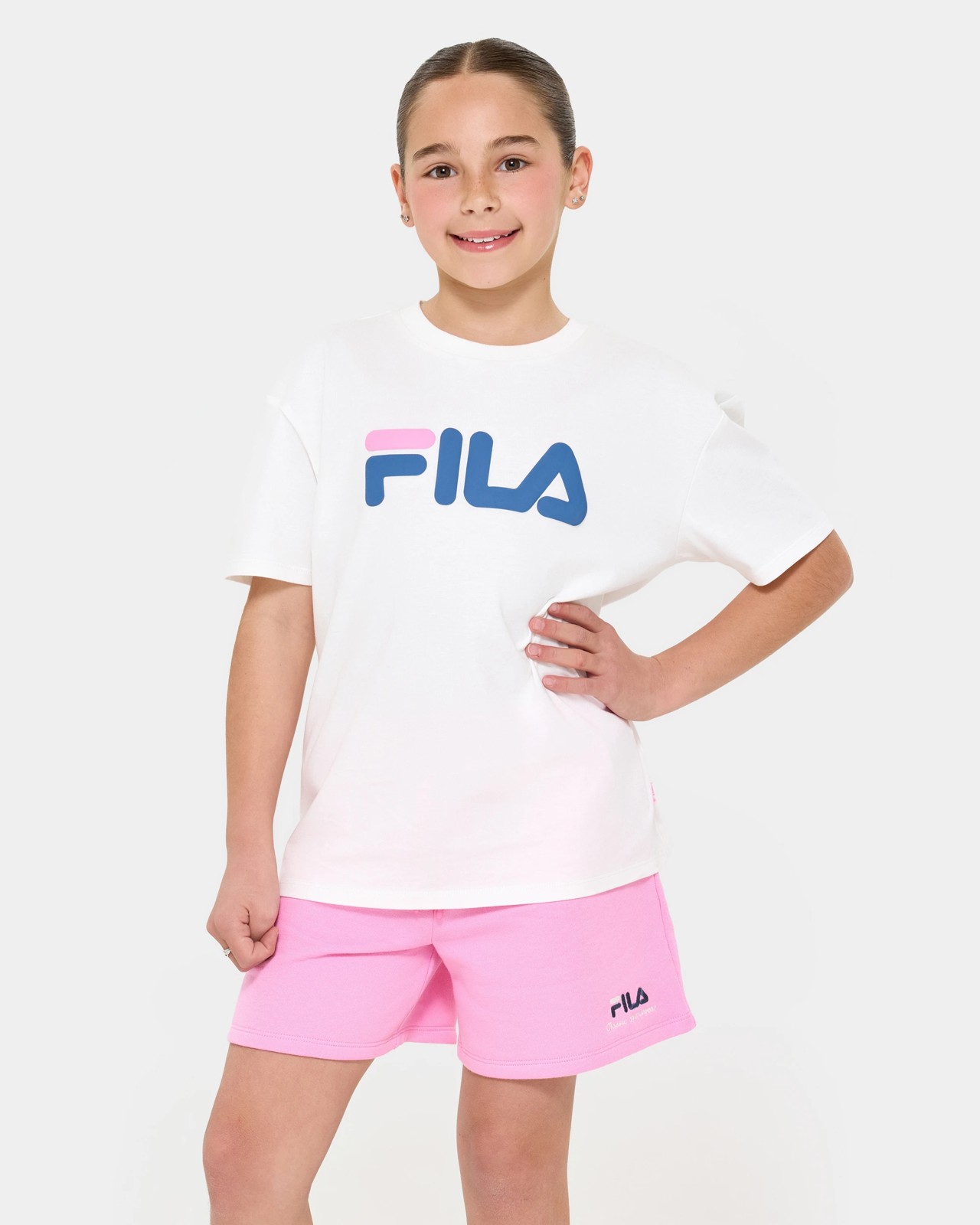Give your wardrobe a bold refresh with the Big Girls Fila Harper Logo T-shirt designed for comfort and confidence. Made from soft, breathable cotton, this tee has a relaxed oversized fit with a ribbed crew neckline for all-day ease. A raised Fila puff print on the centre front adds texture and a premium finish, while the large graphic print across the back delivers a statement look from every angle. Finished with a branded Fila pip at the left side seam, this tee is perfect for sporty weekends or street-inspired everyday wear.
