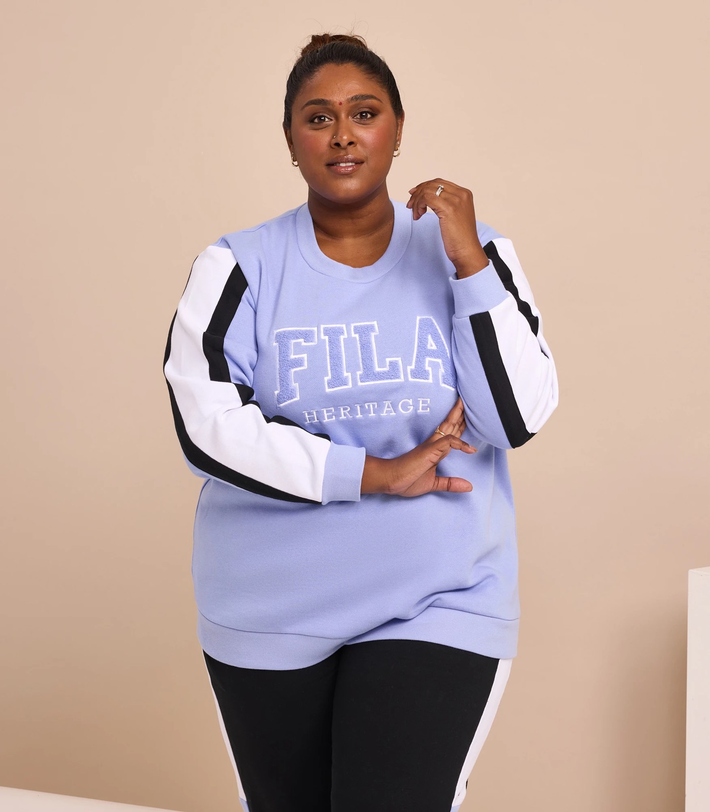 Stay snug and stylish with our women's Mae crew from Fila. This oversized crew in a delicate pale iris hue is perfect for keeping cosy on chilly days. Crafted from a soft Cotton/Polyester brushed fleece, it offers a relaxed fit with a dropped shoulder for a laid-back look. The ribbing details at the hem, neckline, and cuffs add an extra touch of style. Whether it's a casual day out or a chilly evening, this versatile crew promises optimum comfort and fashion-forward style.