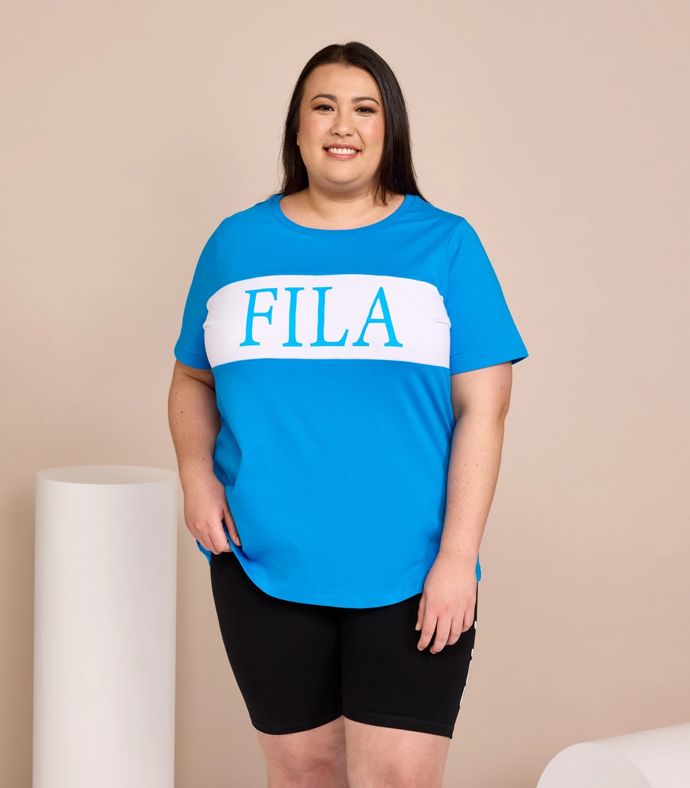 Introducing our Fila Plus Spliced T-Shirt, a must-have for your everyday wardrobe. This tee is not only great for everyday wear but also boasts a flattering silhouette that will make you look and feel amazing. The standout feature of this tee is the contrast splicing on the center front chest, which adds a touch of uniqueness to the design. The large Fila print further enhances the style, making it a statement piece that will surely turn heads!