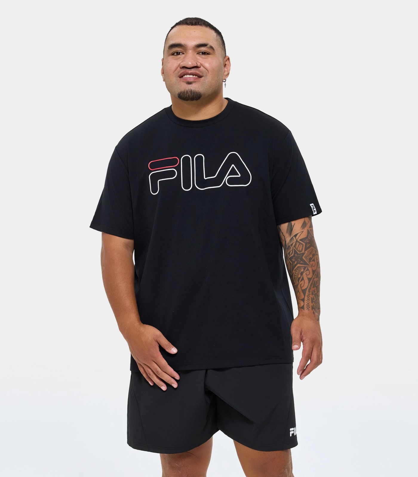 Freshen up your off duty look with the Fila plus size Line tee. In a black colourway, this tee is made from soft Polyester Cotton material for an ultra-comfy and relaxed wear. Coming in a regular fit, this tee has a crew neckline and short sleeves for a classic cut. The iconic Fila outline print with a contrast F-tip on the chest adds a touch of sporty elegance. With a classic crew neckline, short sleeves, and a straight hemline, the core tee is a versatile wardrobe essential that can be worn during workouts through to your everyday outings as it can be dressed up or down. Elevate your look with Fila's signature design and enjoy the perfect blend of fashion and function.