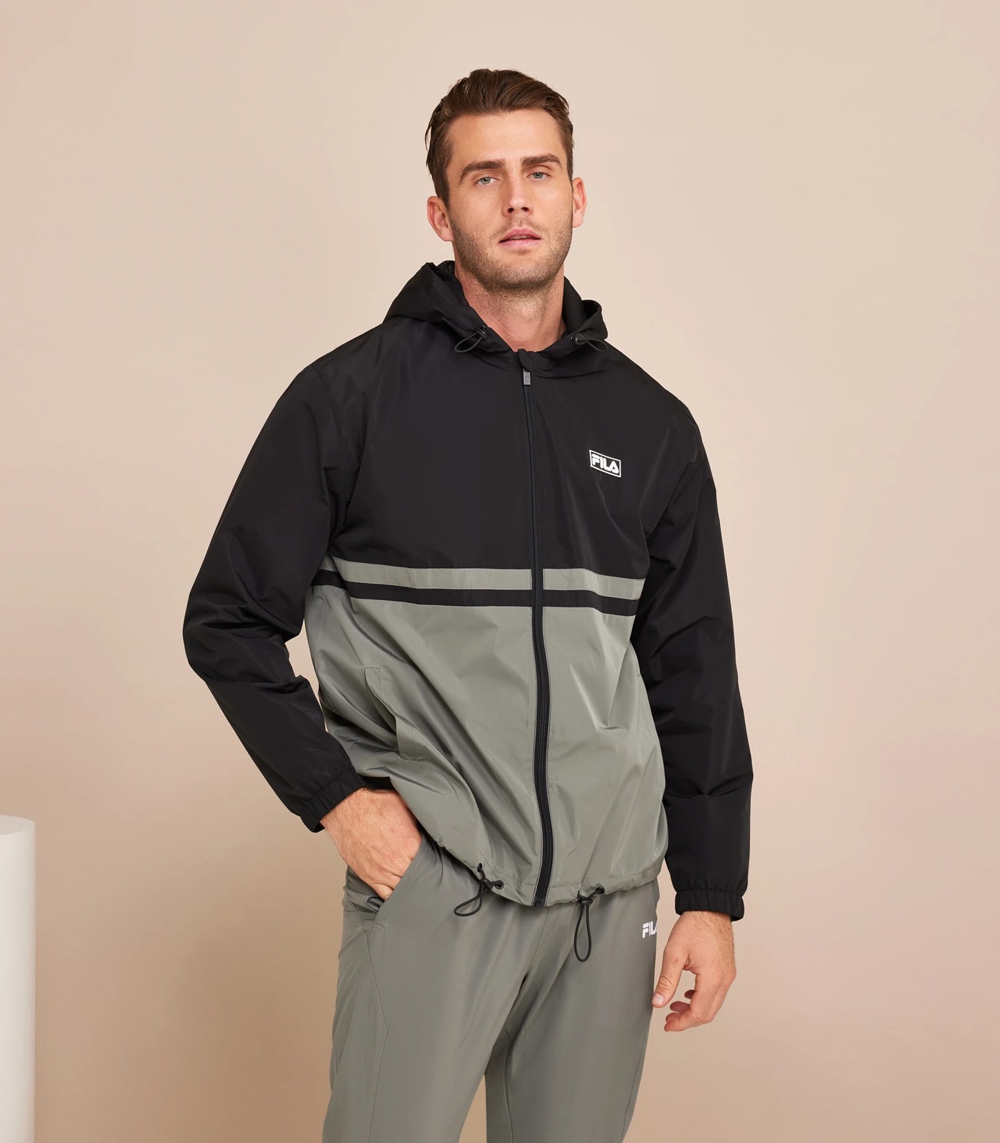 Keep warm and comfy in this men's Reggie spray jacket from Fila. This standard fit jacket is made from polyester for smooth comfort. It features a full-zip fastening and adjustable hood for custom coverage, with elastic toggles to secure the fit at hood and hem. It has a breathable mesh lining, with side pockets for your essentials and is finished with a Fila rubber badge to left chest.