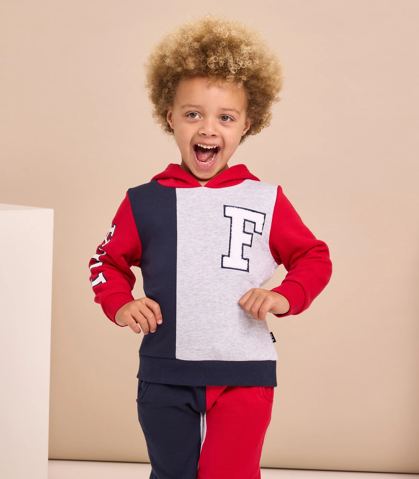 Introducing the Little Boy's Sebastian hoody, crafted with a blend of Cotton Polyester brushed fleece for a luxurious and cosy feel. This hoody showcases a contrasting hood that is fully lined, offering a stylish and functional touch. The unique contrast splicing on the front and back adds a striking and eye-catching element to the design. With an 'F' Terry applique on the front left chest and a Fila print on the right sleeve fold, this hoody exudes a trendy and sporty vibe. The ribbing on the cuffs and hem ensures a secure and comfortable fit. Stay warm and stylish with the Fila Sebastian Splice Popover Sweater.