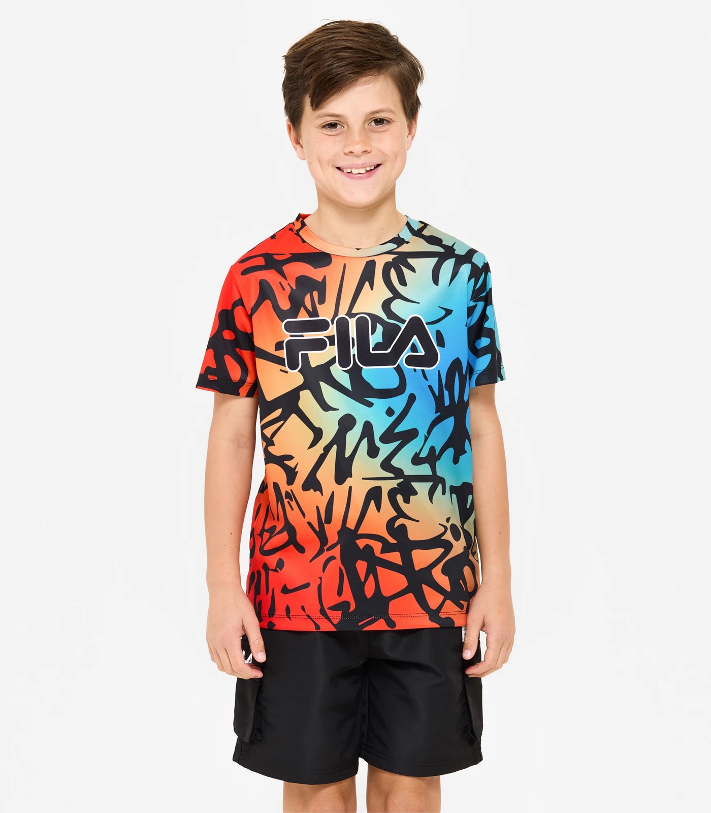 Make a statement with the Billy T-shirt from Fila. This Boy's active tee is made with Polyester and features a Fila print to the chest, as well as an all over graffiti gradient effect. This tee is perfect for your active lifestyle.
