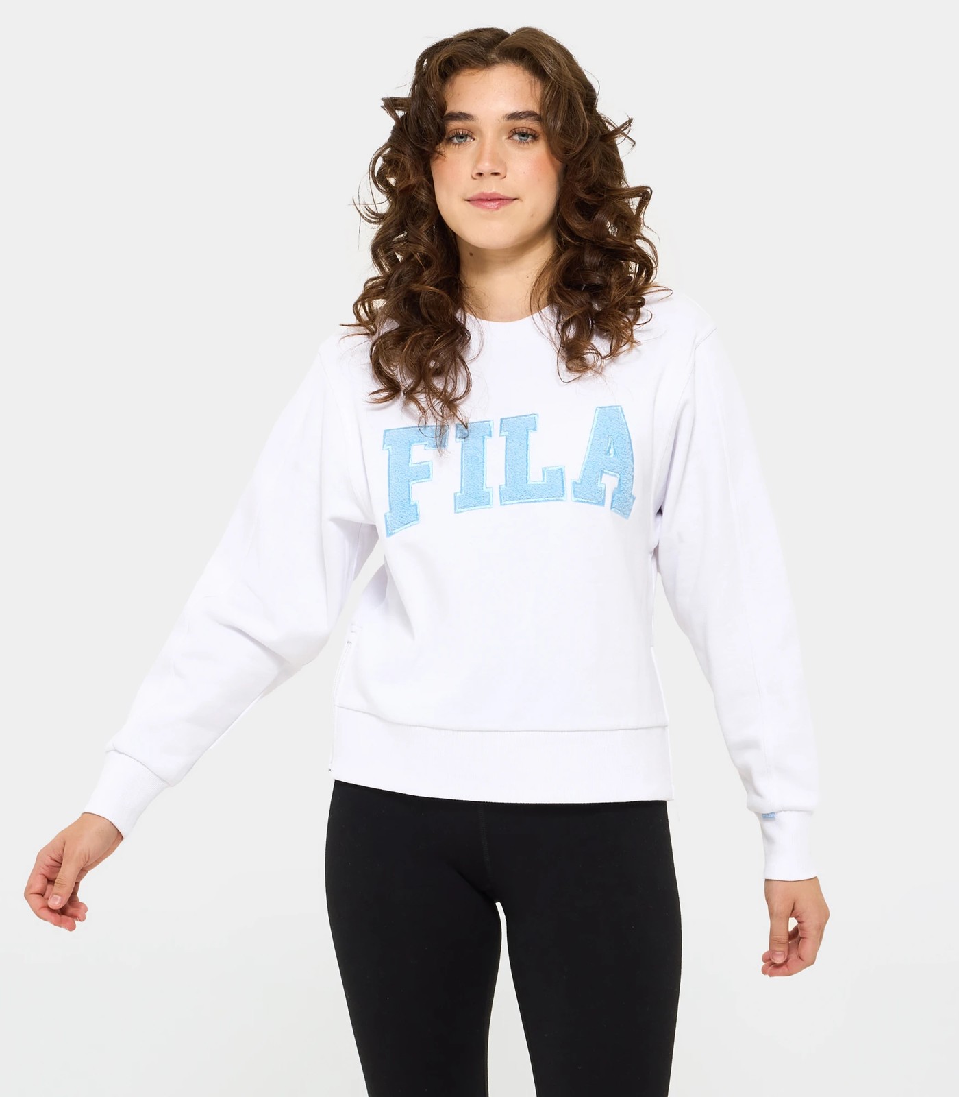 Step up your style with the Fila Terry Crew Jumper. Feel the comfort of cotton/polyester brushed fleece with a large Fila terry applique embroidery on the chest. Enjoy the convenience of zips on the hem and cover stitching on armhole and sleeve seams. Stay snug with ribbed neck, cuff, and hem. The Fila elastic back neck tape adds a touch of sports luxe. Elevate your look effortlessly with the jumper as the model wears size ten. Upgrade your wardrobe now!