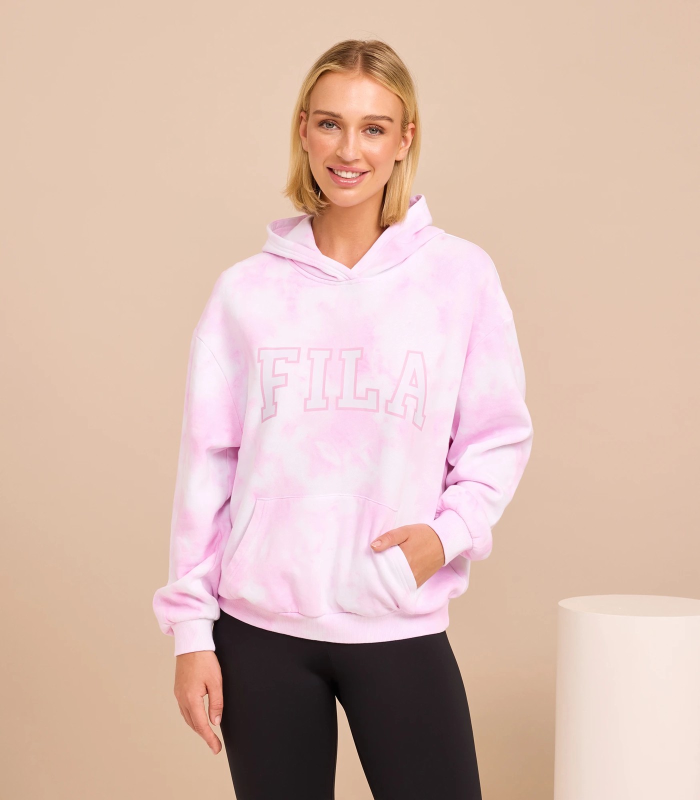 Stay warm and stylish in the Women's Gisele tie-dye hoody from Fila. This cosy hoody is made from a soft blend of Cotton and Polyester brushed fleece, providing a comfortable feel. With its oversized fit and true tie-dye pattern, this hoody offers a trendy and unique look. It features extended shoulders and a large kanga pocket, perfect for storing your essentials. The Fila print on the centre front chest adds a touch of branding, and the ribbed cuffs and hem ensure a snug and secure fit. The Cotton Jersey hood adds an extra layer of cosiness for those chilly days. The Women's Gisele hoody is a versatile choice for both casual and athleisure outfits, effortlessly combining comfort and fashion in one stylish package.