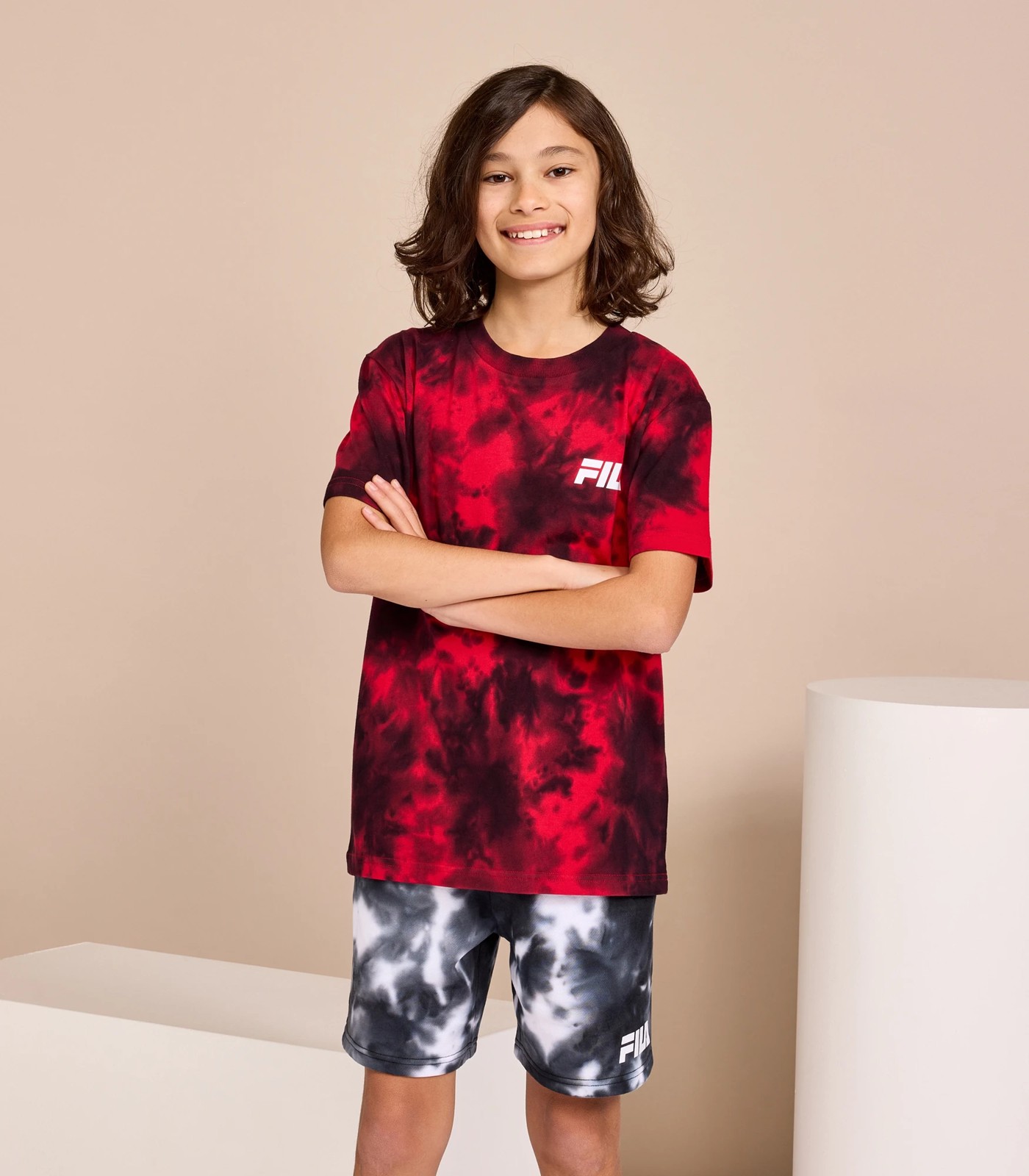 Bring some vibrancy into their wardrobe this season with the Landon tie-dye tee! Constructed from breathable Cotton, it offers all day comfort and an oversized fit. Boasting dropped shoulders and ribbing to the neck, this tee stands out for its gorgeous red authentic tie-dye pattern that instantly grabs attention. The Fila print to left chest adds a nice touch of branding too.