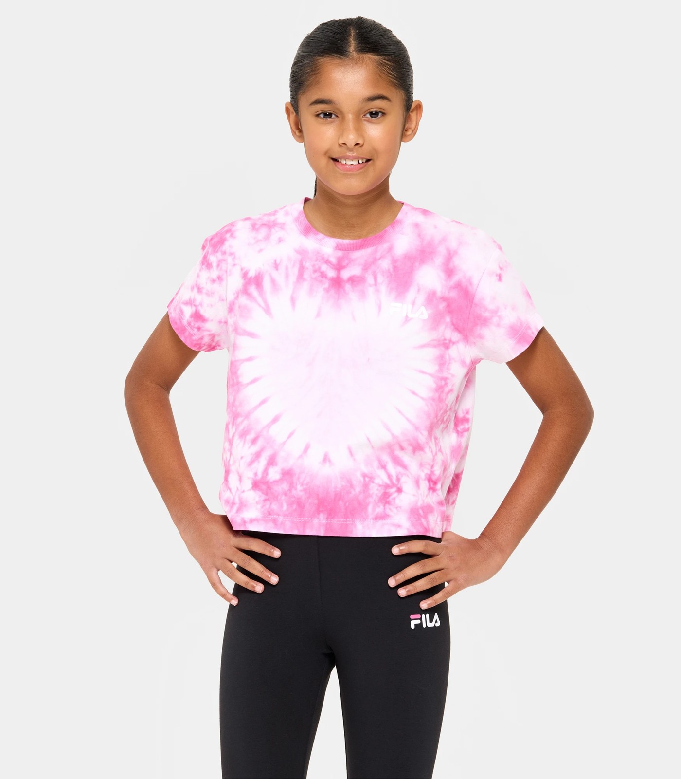What's not to love about the Emma tie-dye Tee! This tee is a slightly cropped boxy tee that is oversized. Featuring a true heart tie-dye, ribbing to neck and a fila print to the front left chest. Pair back with the Emma tight (sold separately) for a comfy fit.