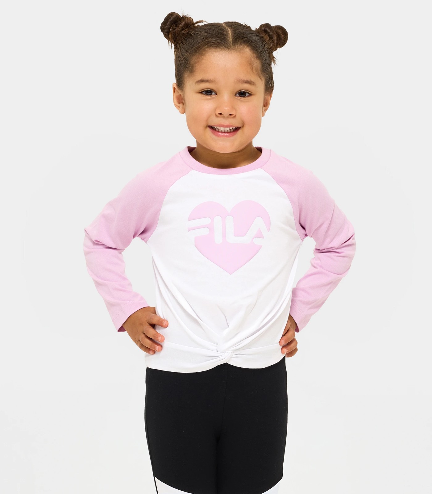 Discover effortless style with the Fila Tie-Front Top. This girls' top offers a cosy cotton feel and features contrasting long sleeves for extra flair. The charming Fila heart puff print at the centre adds a unique touch, while the knot at the front hem offers a trendy twist. Finished with a ribbed neck and Fila elastic back neck tape, this top is perfect for making a style statement. Don't miss out - add a little Fila magic to your little one's wardrobe today!