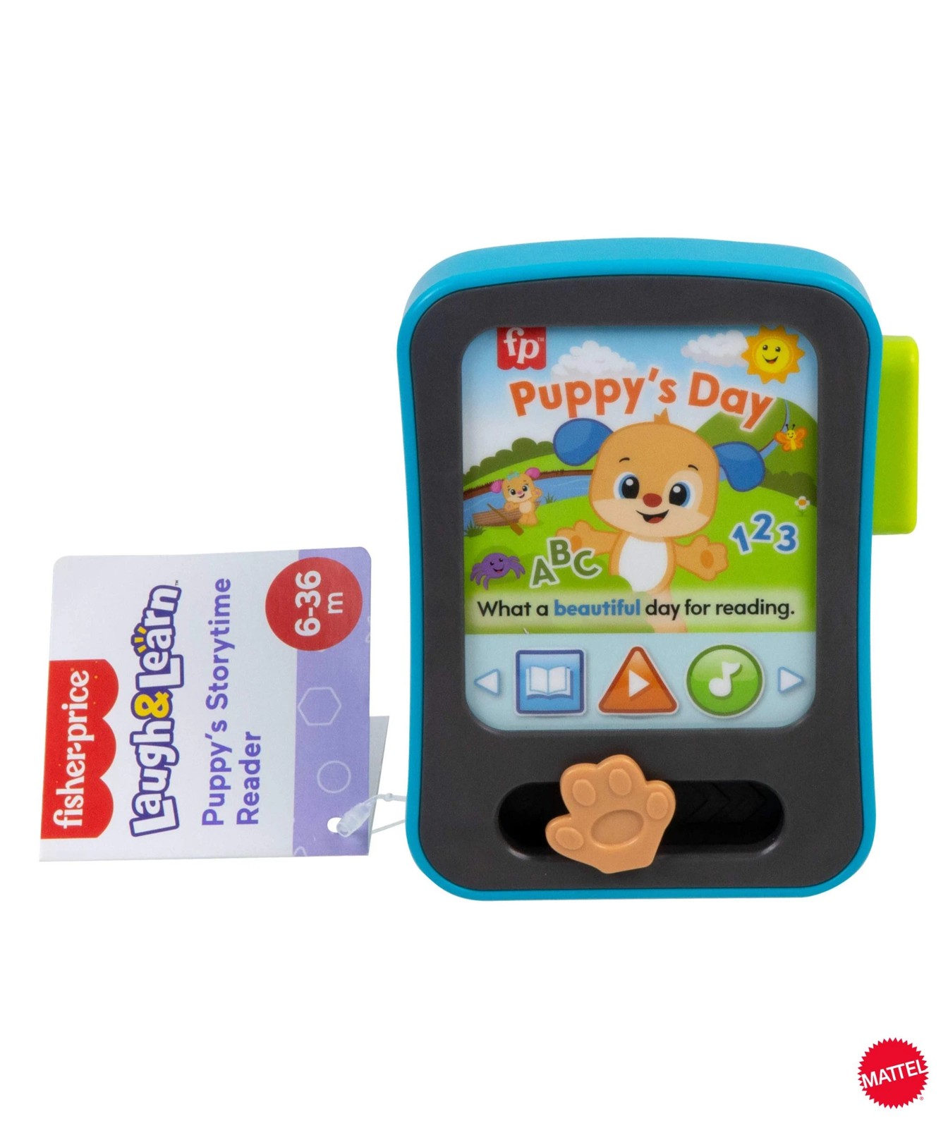 Electronic pretend e-reader toy with lights, educational songs, and classic nursery rhymes for infants and toddlers.