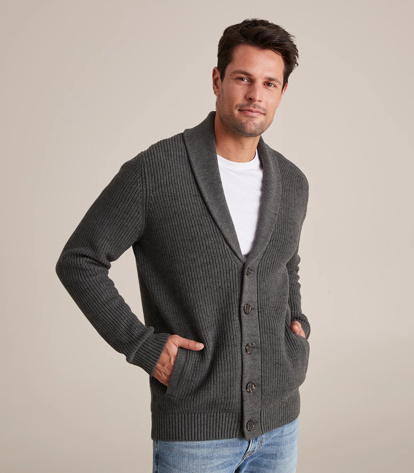 Made from soft cotton, the Fishermans Rib Knit Cardigan is a great choice on cold days. It features a folded collar, button through front and a straight hemline.