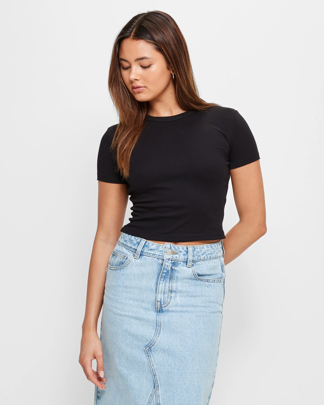 The Fitted T-Shirt by Lily Loves is a must-have addition to any wardrobe. Crafted from a premium cotton blend, it offers superior comfort throughout the day. The slim fit design creates a flattering silhouette, while the ribbed crew neckline and short sleeves add a touch of style. The straight hemline and short length make it perfect for pairing with high-waisted jeans or skirts. Whether you're going for a casual day out or dressing up for a night out, this Lily Loves t-shirt brings both comfort and style. Upgrade your wardrobe today and experience the perfect blend of fashion and comfort.