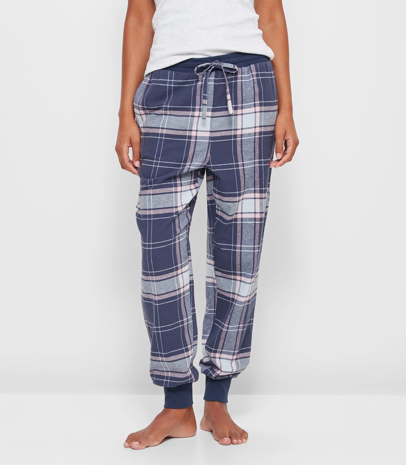 Introducing our Flannelette Sleep Jogger Pants, the perfect addition to your loungewear collection. Crafted from a breathable cotton fabric, these jogger pants offer both comfort and warmth. The regular fit and ribbed waistband with functional drawstring ensure a secure and adjustable fit. With side pockets and a jogger cut, these pants are as functional as they are stylish. The long leg length and thick ribbed cuffs provide extra cosiness for those chilly nights. Upgrade your sleepwear game with our Flannelette Sleep Jogger Pants today and experience ultimate comfort and style. Don't miss out, place your order now!