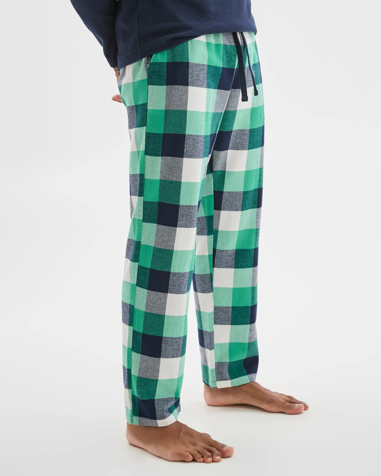 Enjoy unwinding in these flannelette sleep pants, designed for ultimate nighttime relaxation. Made from soft cotton flannelette and double side brushed for a soothing feel, these pyjama trousers provide gentle comfort to help you settle in and drift off with ease. The timeless check pattern brings a classic charm, while the elastic waistband and adjustable drawstring ensure they fit just right. Handy slanted side pockets offer room for bedtime essentials, and the regular fit keeps you feeling at ease all evening. Make your evenings more restful with these full-length sleep pants—treat yourself to restful comfort and add them to your nightwear collection now.