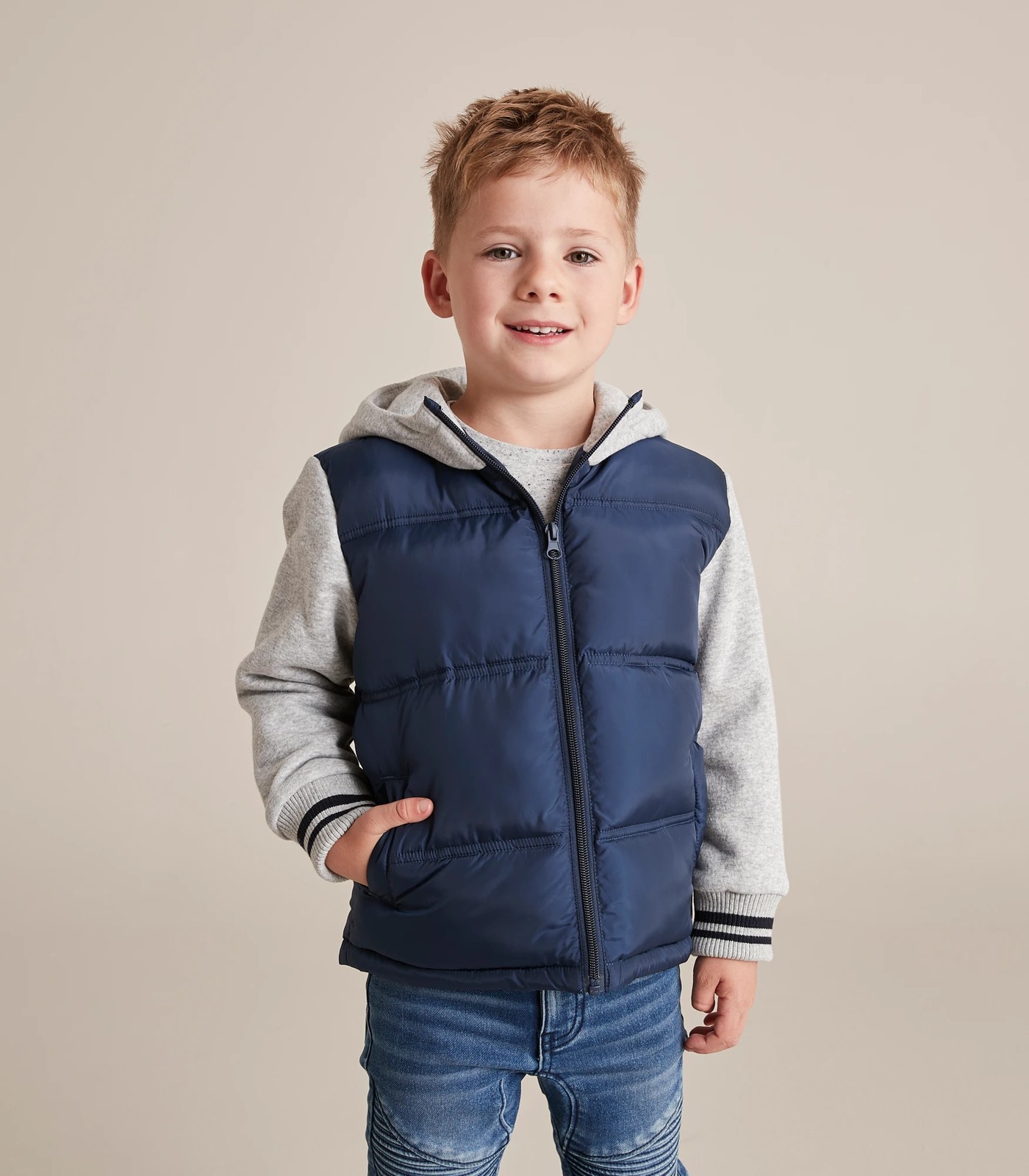 Great for winter comes the Fleece Sleeve Puffa Jacket, featuring a jersey hood and long sleeves, full zip front and with a padded body for extra warmth and comfort.