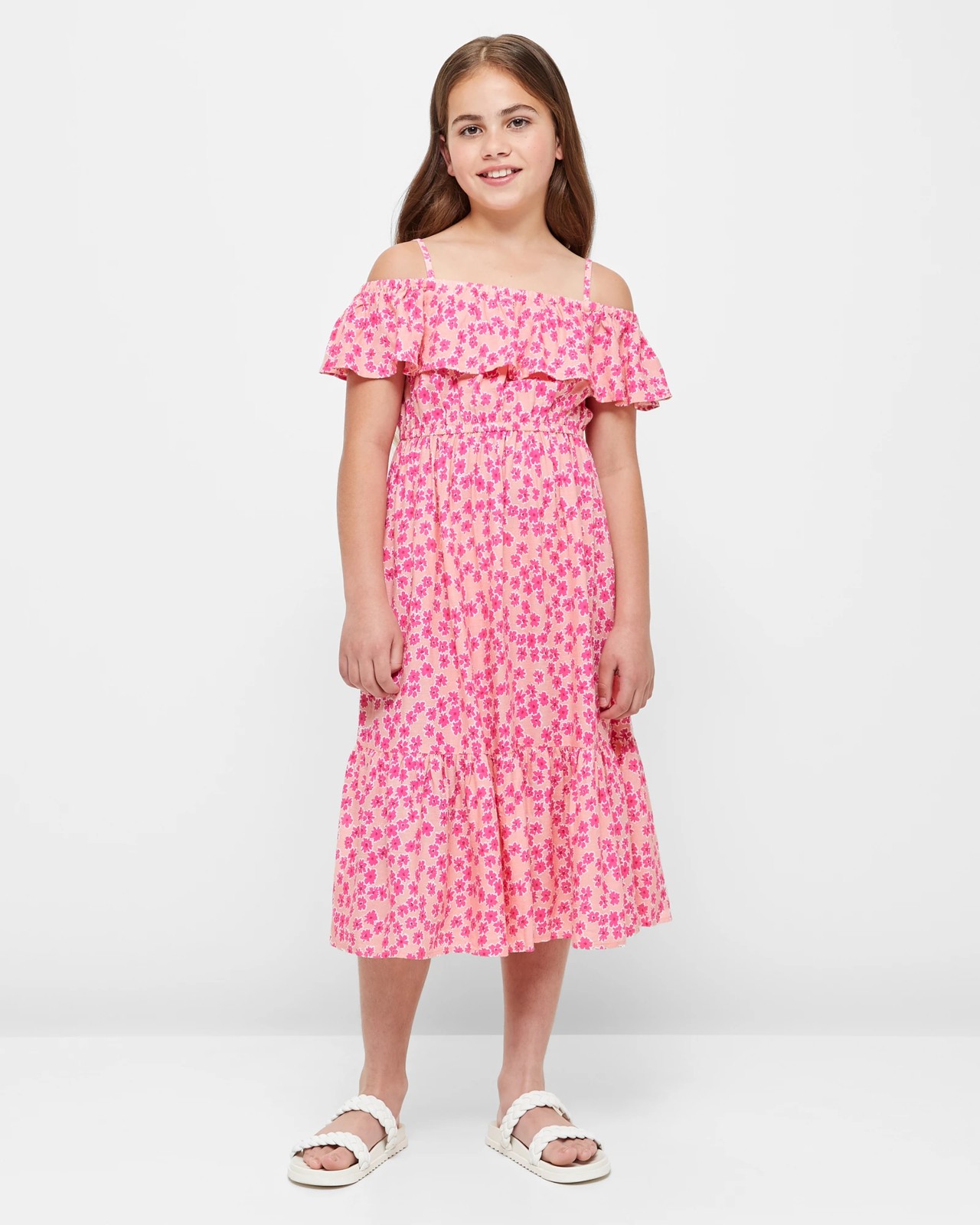 Capture the essence of summer with our Floral Cold Shoulder Midi Dress. This effortlessly chic dress features a cold shoulder design and a flattering midi length that exudes elegance. The vibrant floral print adds a pop of colour to her wardrobe, making it perfect for sunny days and garden parties. Made from lightweight and breathable fabric, this dress ensures maximum comfort throughout the day. Complete her look with a pair of heels for a sophisticated evening ensemble or dress it down with sandals for a laid-back daytime look. Let her embrace the season with our Floral Cold Shoulder Midi Dress today!