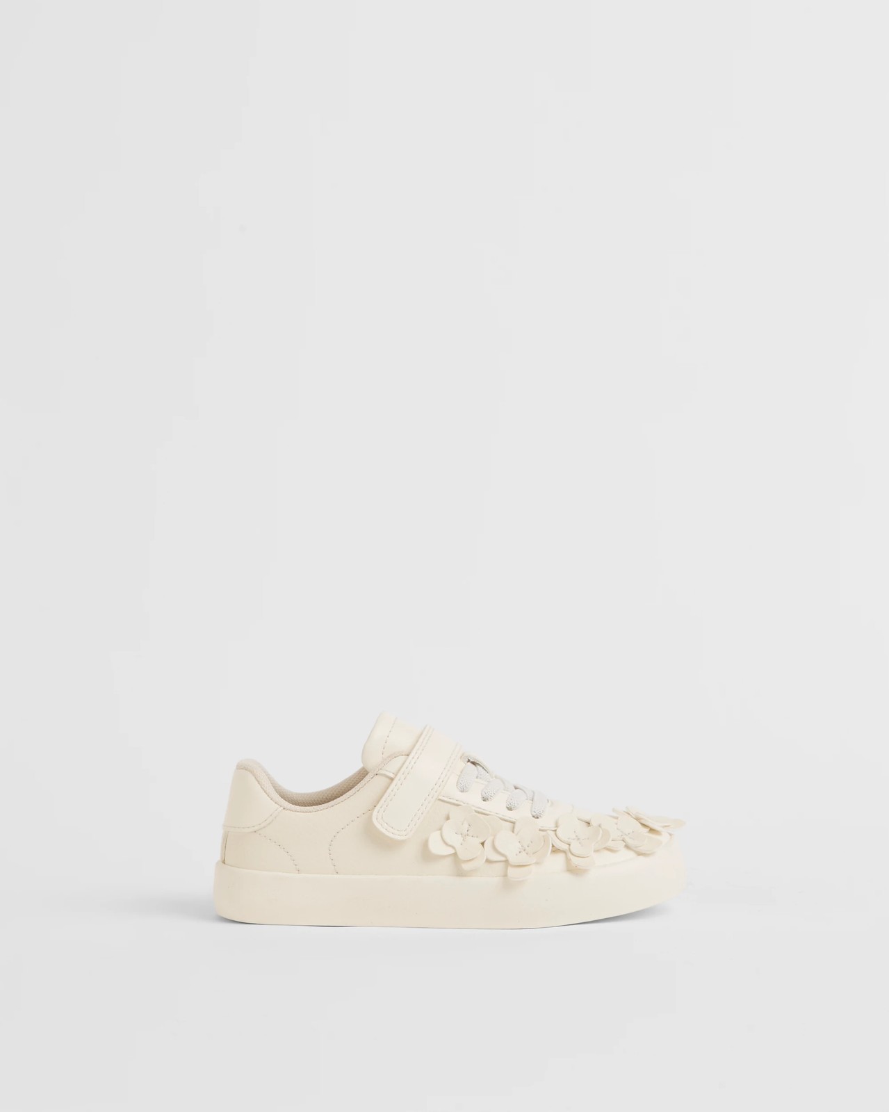 Discover a burst of personality with the Flower Sneaker, designed for girls who love to shine. Featuring sweet flower appliques on the upper, these sneakers add an extra touch of charm to everyday looks. The laced front with an easy self-fastening strap makes getting ready a breeze, while a cushioned collar and footbed surround small feet in comfort. A synthetic sole provides reliable support for energetic playdates or day-long outings. Let your child express their playful spirit with every step. Ready to brighten up her wardrobe? Choose the Flower Sneaker and let those little adventures bloom in style.