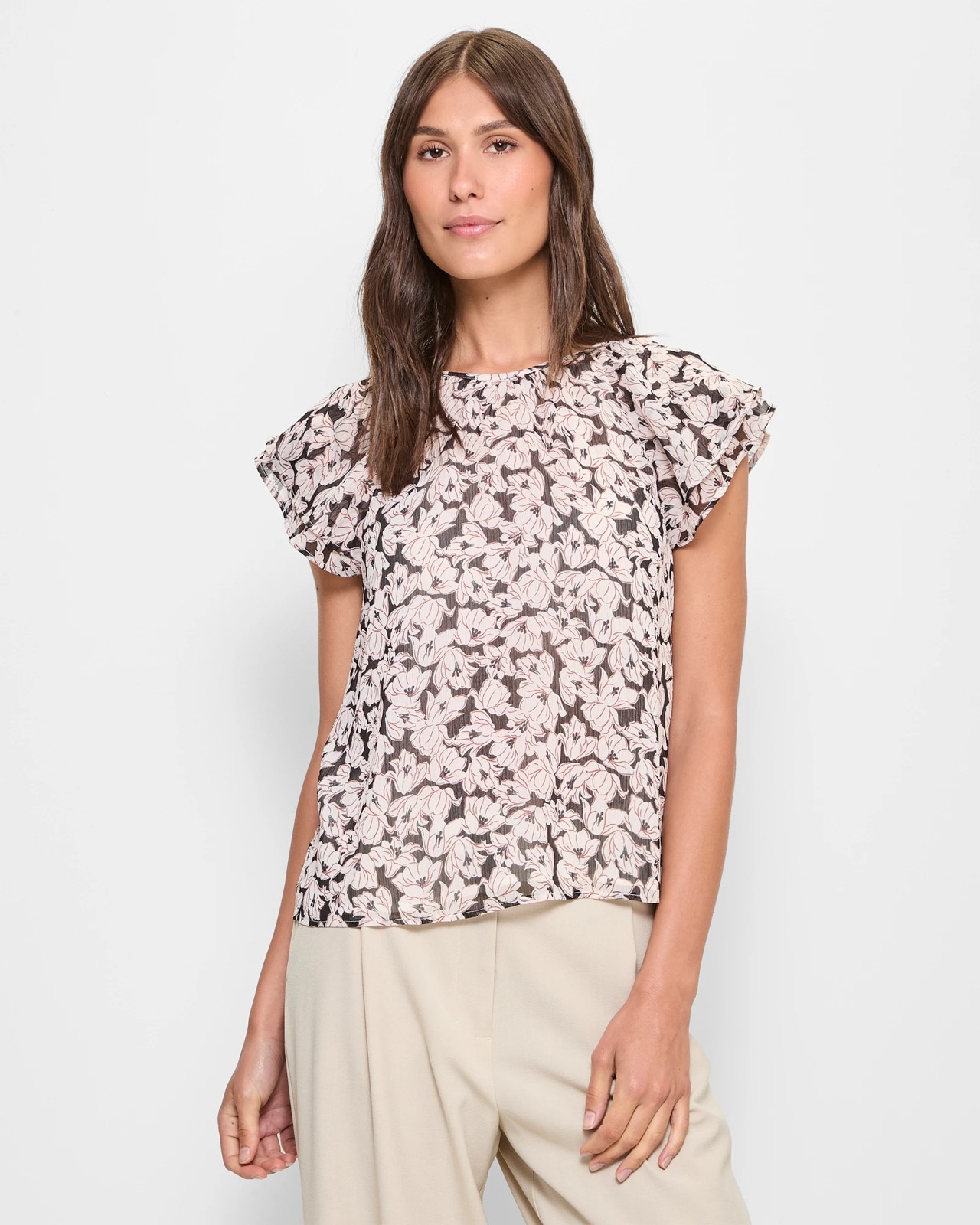 Discover the charm of our Flutter Sleeve Blouse. Made from lightweight polyester, this blouse features delicate flutter sleeves and a rounded neckline for a stylish look. The centre lining ensures complete coverage, while the straight hemline and back button closure add classic touches. Ideal for both professional and casual occasions, this versatile blouse is a must-have addition to your wardrobe.