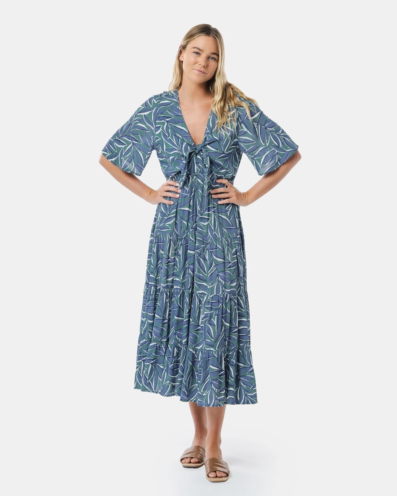 Feminine, comfy and flowy, the Piping Hot tie front midi dress is perfect to take you from day to night. Enjoy the flattering fit featuring flutter sleeves, elasticated waist and a tiered skirt.