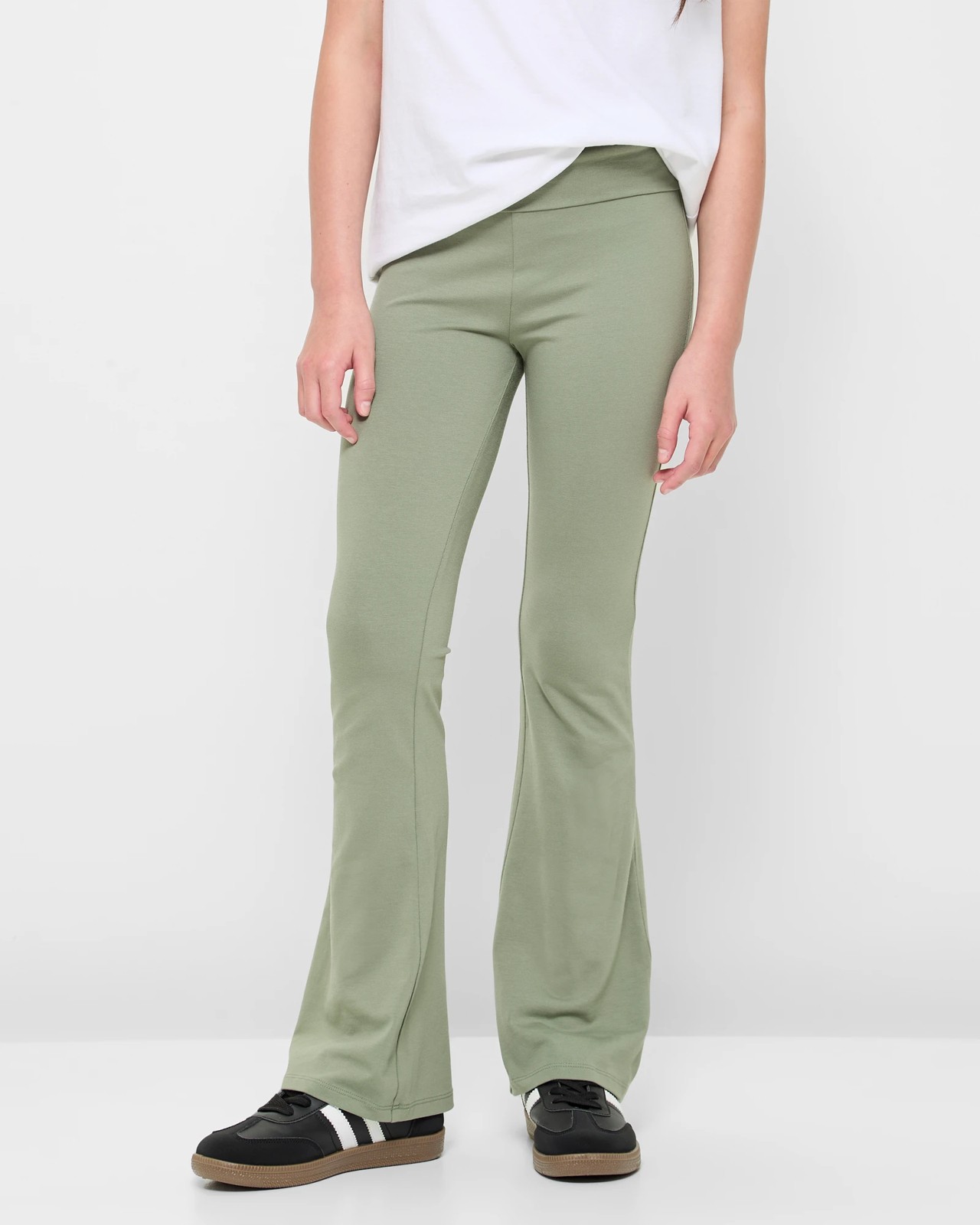 Step up your style game with our Folded Waist Flare Pants. These trousers are designed for girls who love a blend of comfort and class. The cotton fabric with a hint of stretch ensures you move freely, while the foldover elastic waistband provides a secure fit. The full-length design and stylish flare leg add that extra touch of chic to any outfit. Perfect for everyday wear or special occasions, make these pants your new favourite wardrobe staple today.