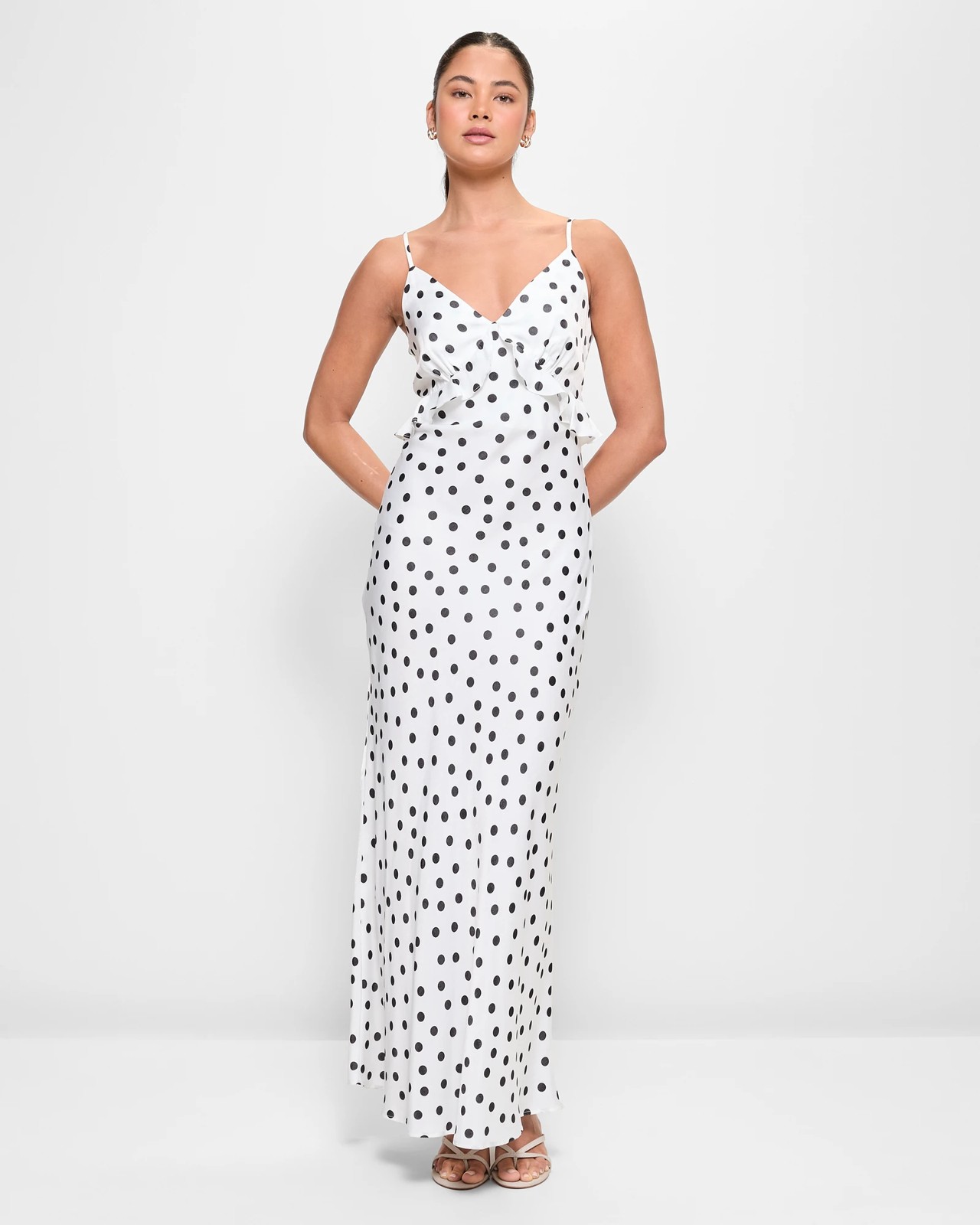 Discover the elegance and charm with the Frill Maxi Dress by Lily Loves. Designed for those who cherish comfort and style, this dress offers a silky, shiny feel that's perfect for both casual and special occasions. The plunge v-neckline and thin, adjustable straps ensure a beautiful shape, while the frill detail under the bust adds a touch. Transform your wardrobe with this standout piece today!