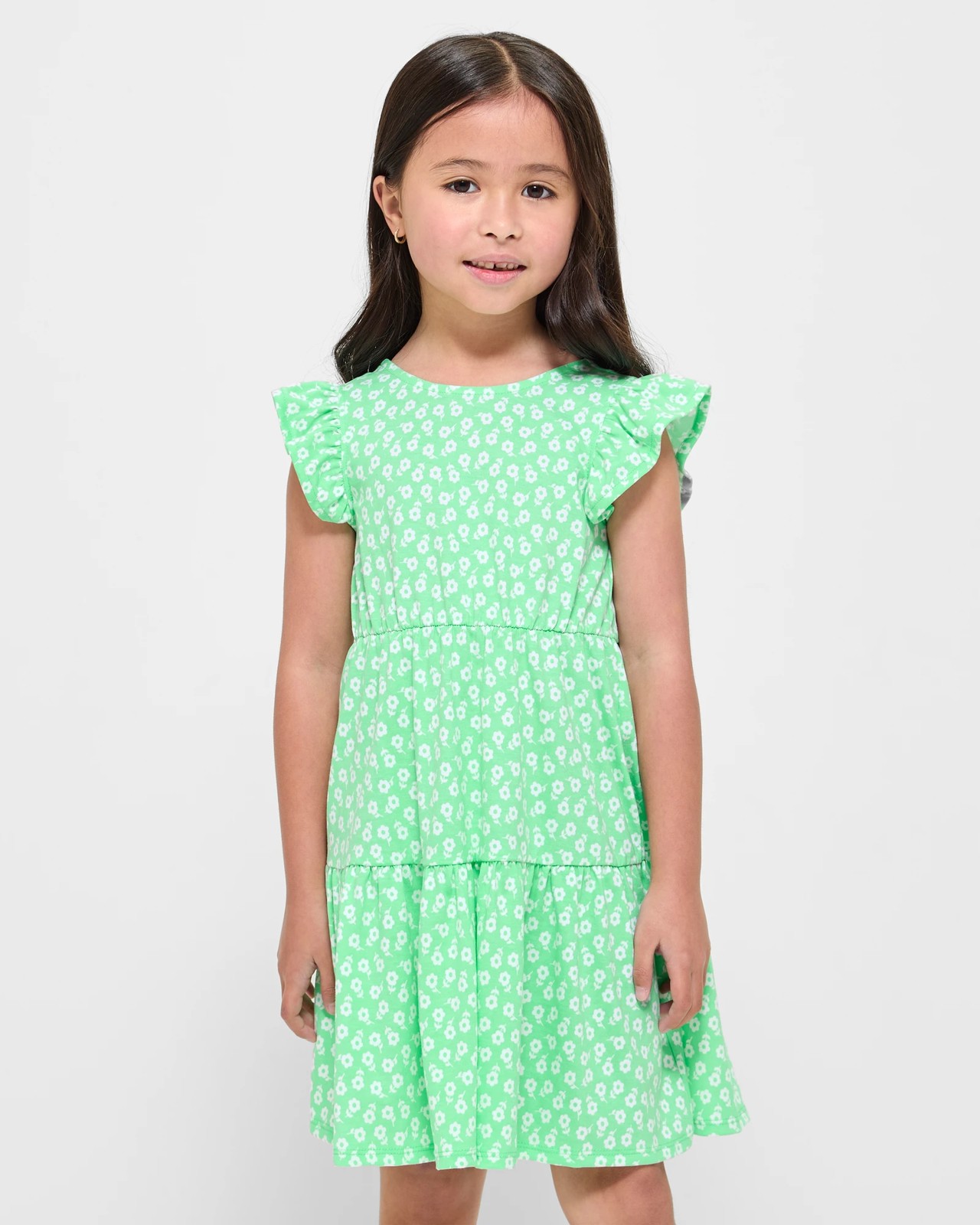 Indulge in contemporary chic with our Frill Sleeve Cut Out Back Dress. Embrace on-trend style with its charming design featuring frill shoulders and a deep V back detailed with a bow. The dress boasts a regular fit, crew neck, sleeveless silhouette, and a tiered hemline for a playful touch. The gathered elastic waistband ensures a flattering fit, perfect for any occasion. Elevate your daughter's wardrobe with our cotton dress and make a fashionable statement. Don't miss out - add a touch of elegance to her look today!