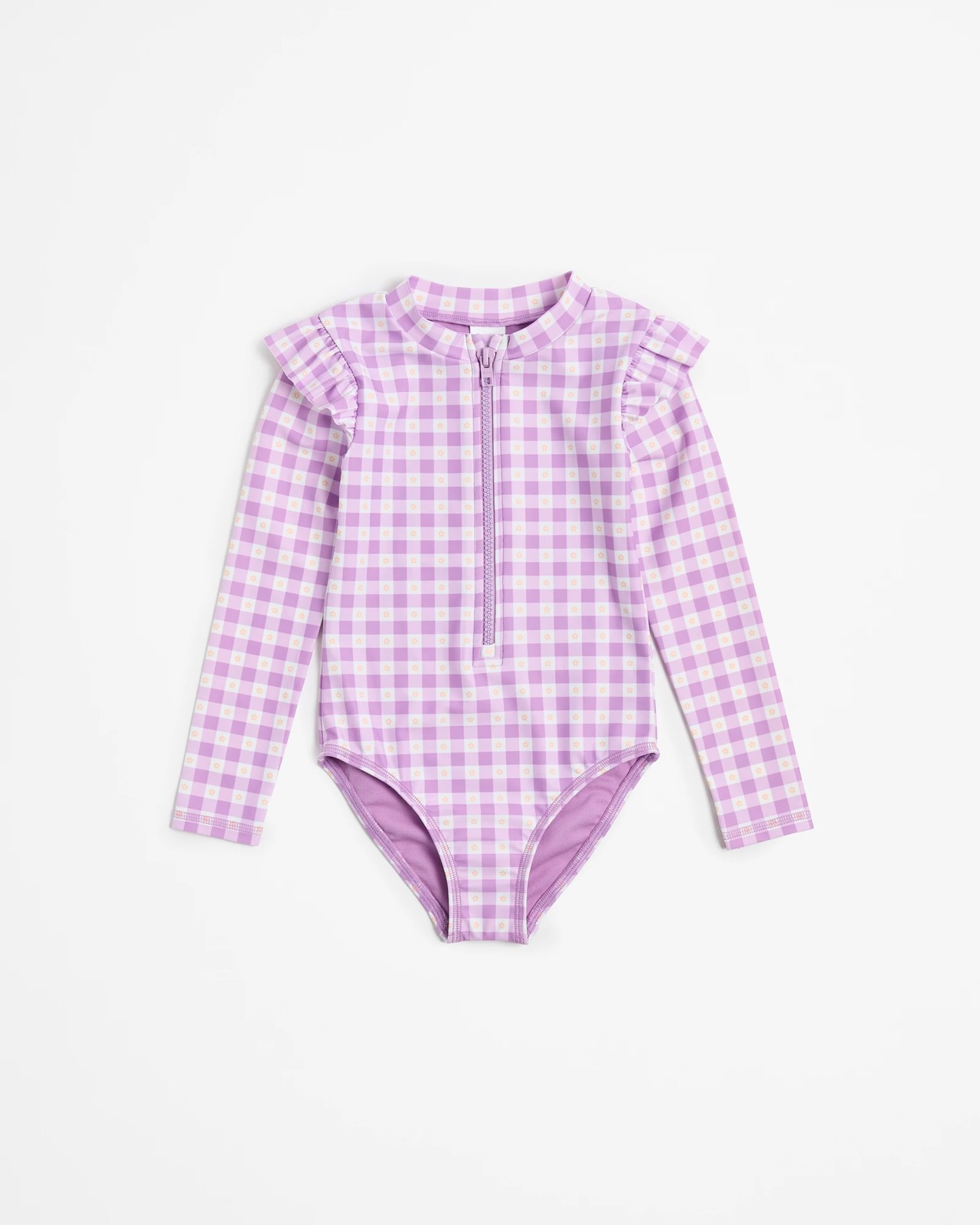 Dive into style with our Ocean Wave Frill Swimsuit! Crafted from recycled materials with great UPF50+ protection, your little one can surf the waves worry-free. The stand collar and long sleeves provide additional coverage, while the frill shoulder detailing adds a touch of fun. The zip front ensures easy changing, and the swimsuit is fully lined for comfort. Make a splash with a combination of fashion and function!