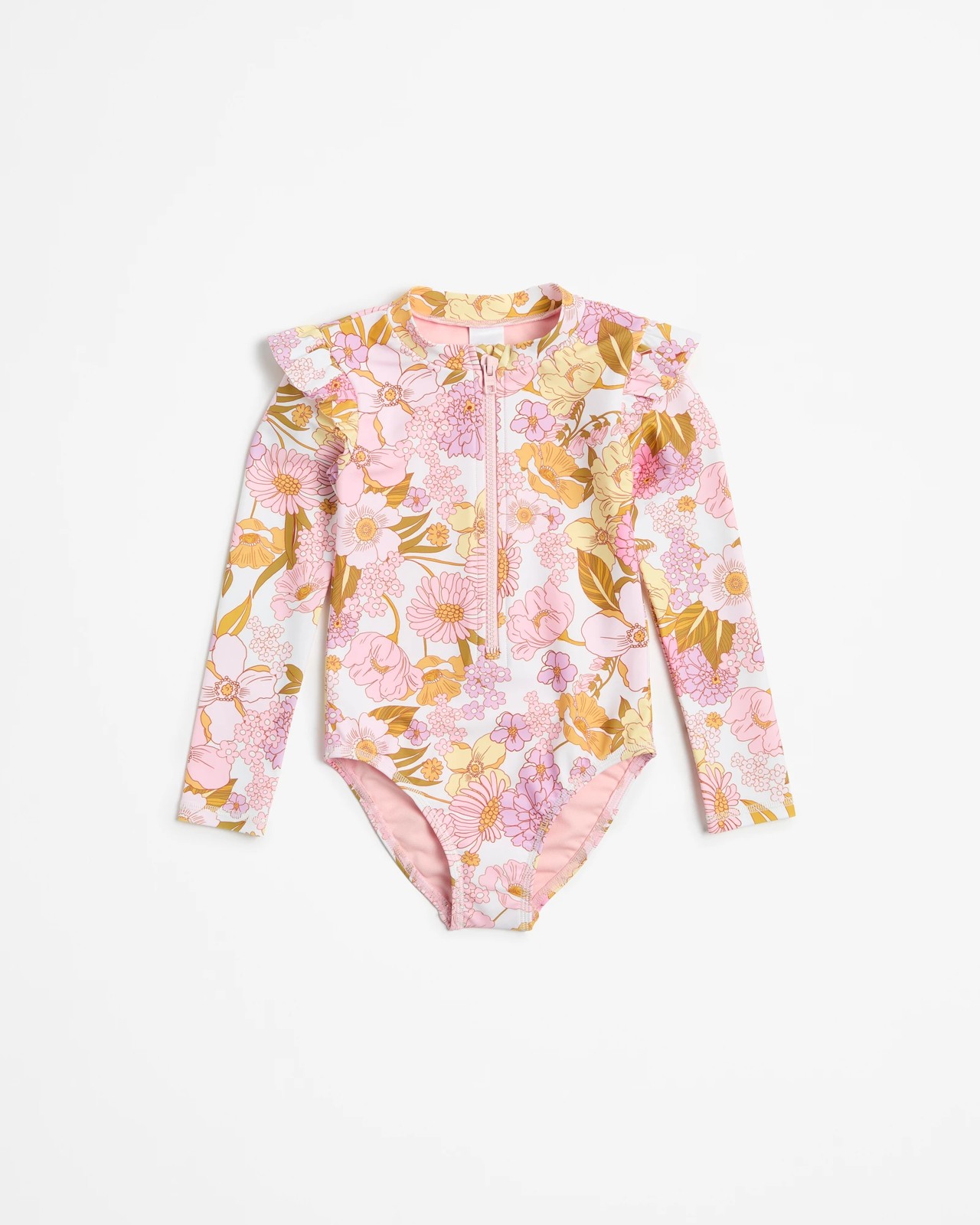 Dive into style with our Ocean Wave Frill Swimsuit! Crafted from recycled materials with great UPF50+ protection, your little one can surf the waves worry-free. The stand collar and long sleeves provide additional coverage, while the frill shoulder detailing adds a touch of fun. The zip front ensures easy changing, and the swimsuit is fully lined for comfort. Make a splash with a combination of fashion and function!