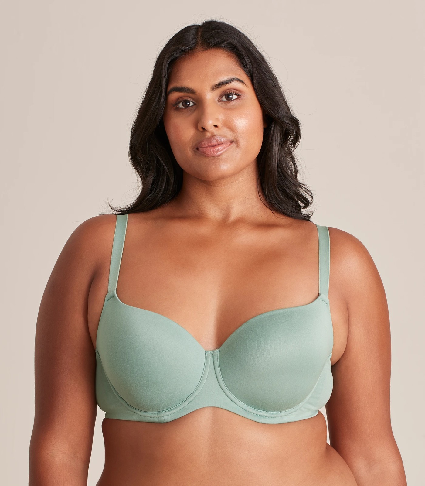 Great for everyday wear, the fuller figure contour brushed t-shirt bra has a full coverage slightly padded cup, underwire for support and is soft to the touch.
