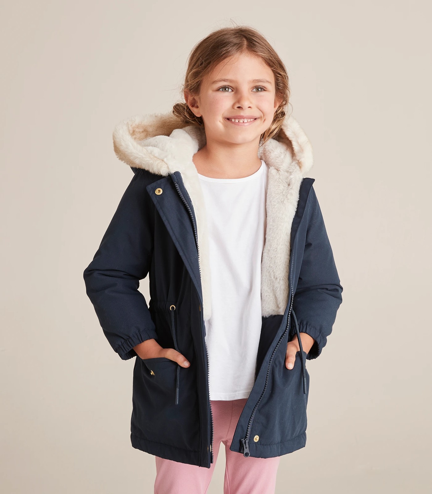 She'll stay warm and cosy in the Fur Trim Parka Jacket, featuring a hood with faux fur trim and lining, a zip front with press studs, an internal drawstring for a close fit and is shower resistant.