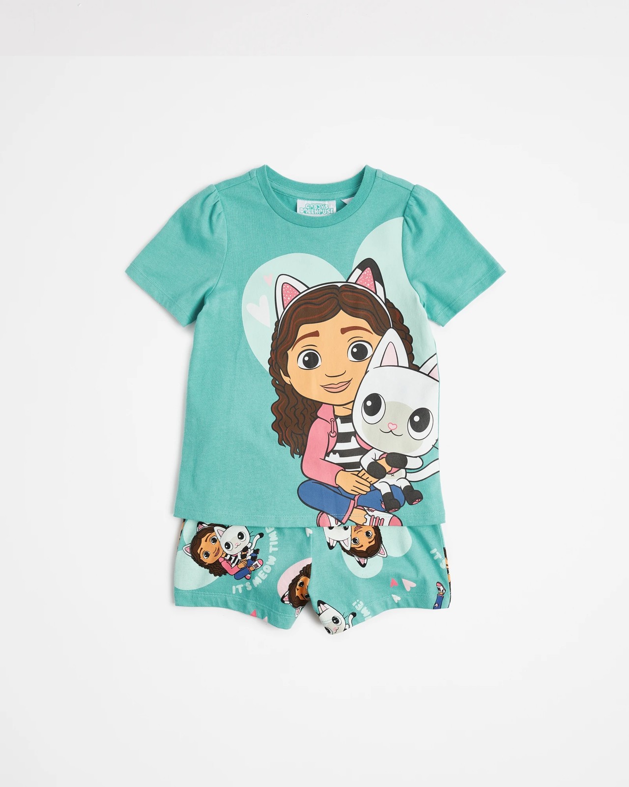 This two piece set from Gabby's Dollhouse is perfect for bedtime. Crafted from a Cotton fabric, the set features a regular fit for comfortable wear. The top is designed with a ribbed crew neck and short sleeves, finished with a large Gabby's Dollhouse print to the front and straight hem. Coordinating shorts feature an all over print with an elasticated waistband for an adjustable fit.
