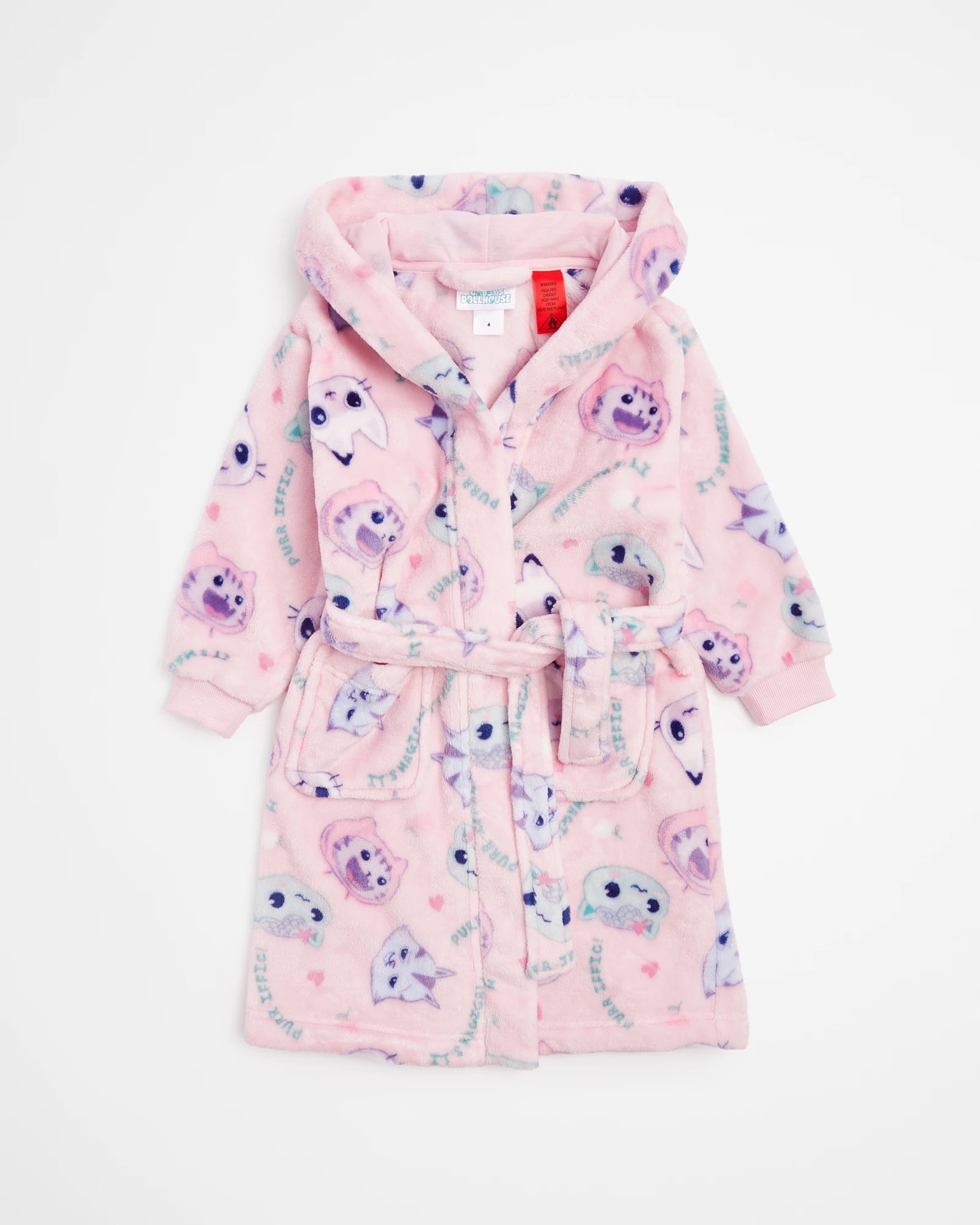 Wrap up in cosy comfort with Gabby's Doll House Fleece Dressing Gown that is perfect for chilly mornings or relaxed evenings. This charming dressing gown features a delightful pink-hued design adorned with Gabby’s Doll House characters. The hood with jersey lining and long sleeves provide extra warmth, while the ribbed cuffs ensure a snug fit. Practical twin front pockets are perfect for little treasures, and the internal tie and self-waist tie with an elasticated back keep everything securely in place. Treat your little one to comfort and make bedtime magical.