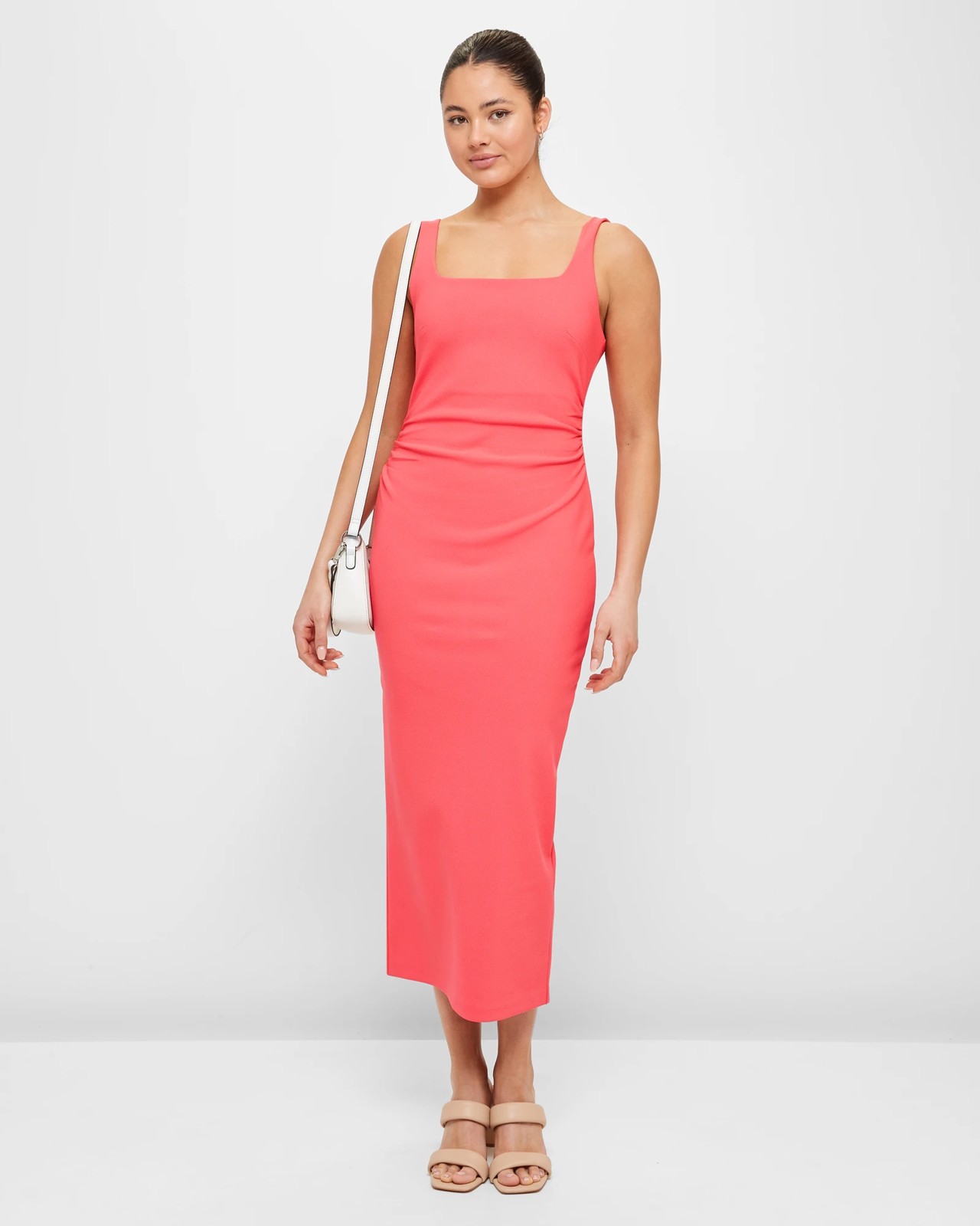 This stylish Lily Loves Gathered Side Midi Dress is the perfect way to add a touch of sophistication to any wardrobe. Crafted from a polyester-rich fabrication with added stretch for comfort, this dress has a slim fit and features a square neckline, thin shoulder straps, sleeveless construction, darting at the chest and gathered sides. The straight hemline and midi length finish off the design and a large centre back split adds a touch of attitude. Perfect for special occasions or everyday wear!