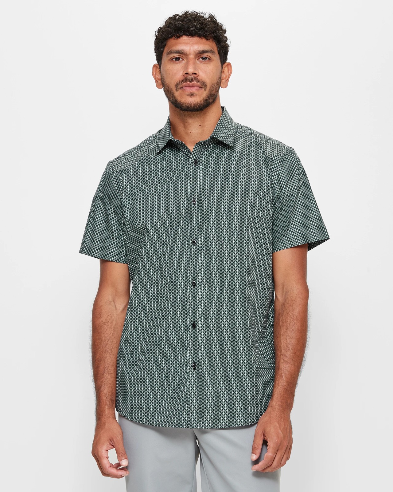 Introducing our Preview Geometric Print Shirt, made from a breathable cotton fabrication for ultimate comfort. This shirt features a regular fit, making it suitable for any casual or semi-formal occasion. The round collared neckline and button-through front add a classic touch to the design. The green and white geometric print adds a stylish and eye-catching element to your outfit. With short sleeves and a curved hemline, this shirt offers a relaxed and versatile style. Elevate your wardrobe with this comfortable and fashionable shirt that effortlessly combines style and functionality.