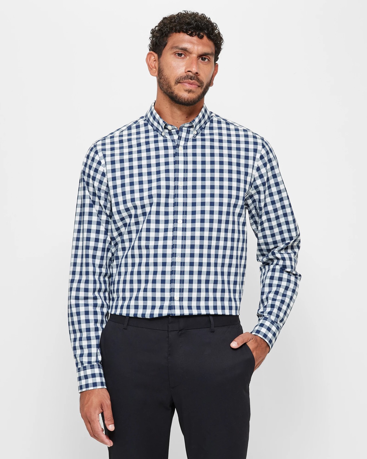 Step up your style game with the Gingham Business Shirt, perfect for workwear and smart casual outings. Made from soft cotton, this shirt ensures comfort throughout your busy day. Its tailored fit and classic gingham print in blue adds a touch of distinct flair to your outfit. The collared neckline and button-down front contribute to a polished look, completed by long sleeves with buttoned cuffs and a straight hemline. Experience comfort and style combined - order yours now!