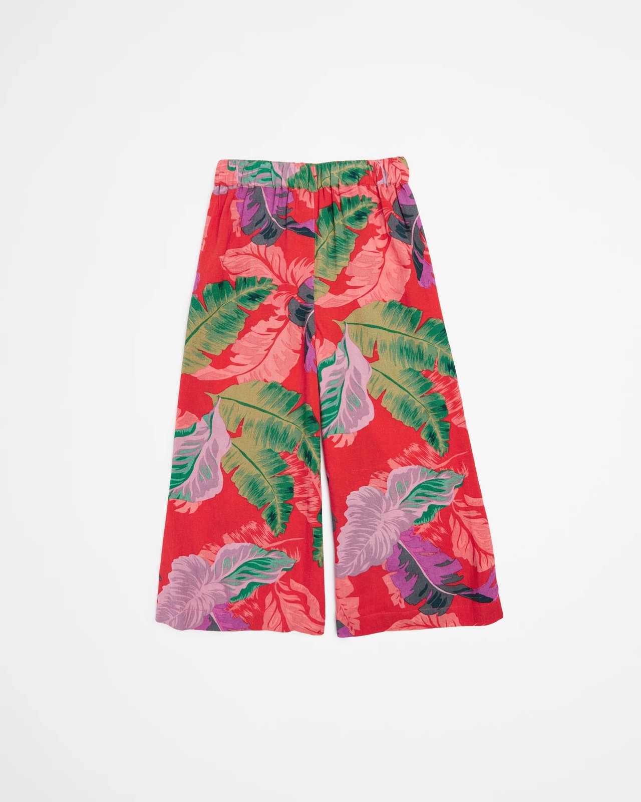 These festive Family Matching Christmas Print Pants are the perfect addition to any holiday wardrobe. Crafted from a lightweight viscose linen blend, these pants feature a regular slip on fit with an elastic waistband and wide leg for a loose fit. The vibrant red tropical print is perfect for bringing some fun and cheer to any family gathering this season! Complete the look with the matching tank available and sold separately.