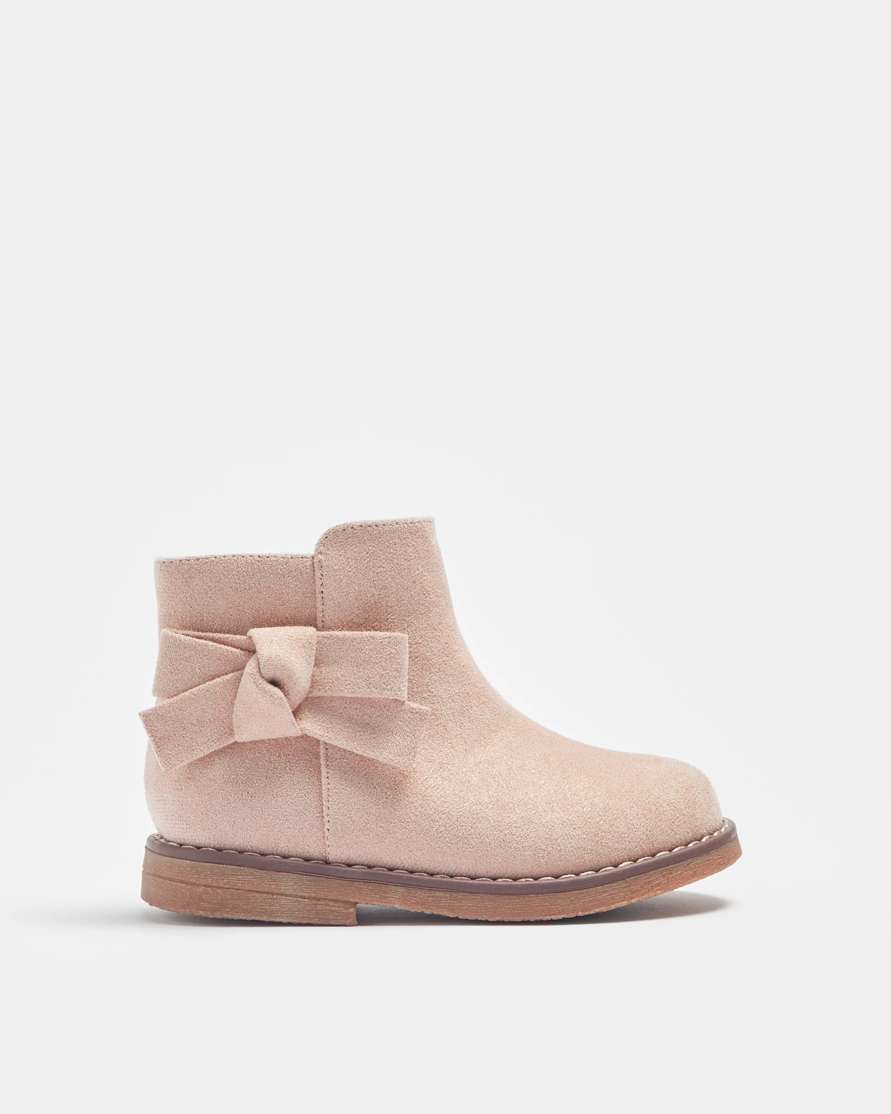Introducing our Girls Junior Bow Boot, a lovely and stylish choice for young fashionistas. Made with a leather-look synthetic upper and featuring an adorable bow detailing, these boots are a must-have for any girl's wardrobe. The closed round toe and inner shaft zip provide comfort and convenience, while the flexible sole and padded footbed ensure easy movement and all-day support. Treat your little one to these delightful boots and add a touch of cuteness to any outfit!