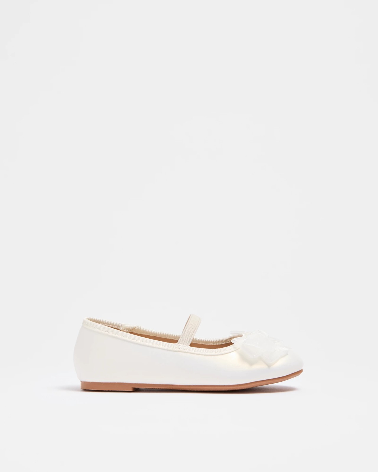 Step into style with our Girls Junior Organza Bow Ballet Flats. Perfect for any special event, these shoes blend comfort and charm. The delicate organza bow adds a touch of sweetness, making every little girl feel delightful. With a padded footbed and secure elastic strap, you can be sure she'll stay comfortable and secure all day. Make her feel unique with these lovely ballet flats. Order now and let her stand out!