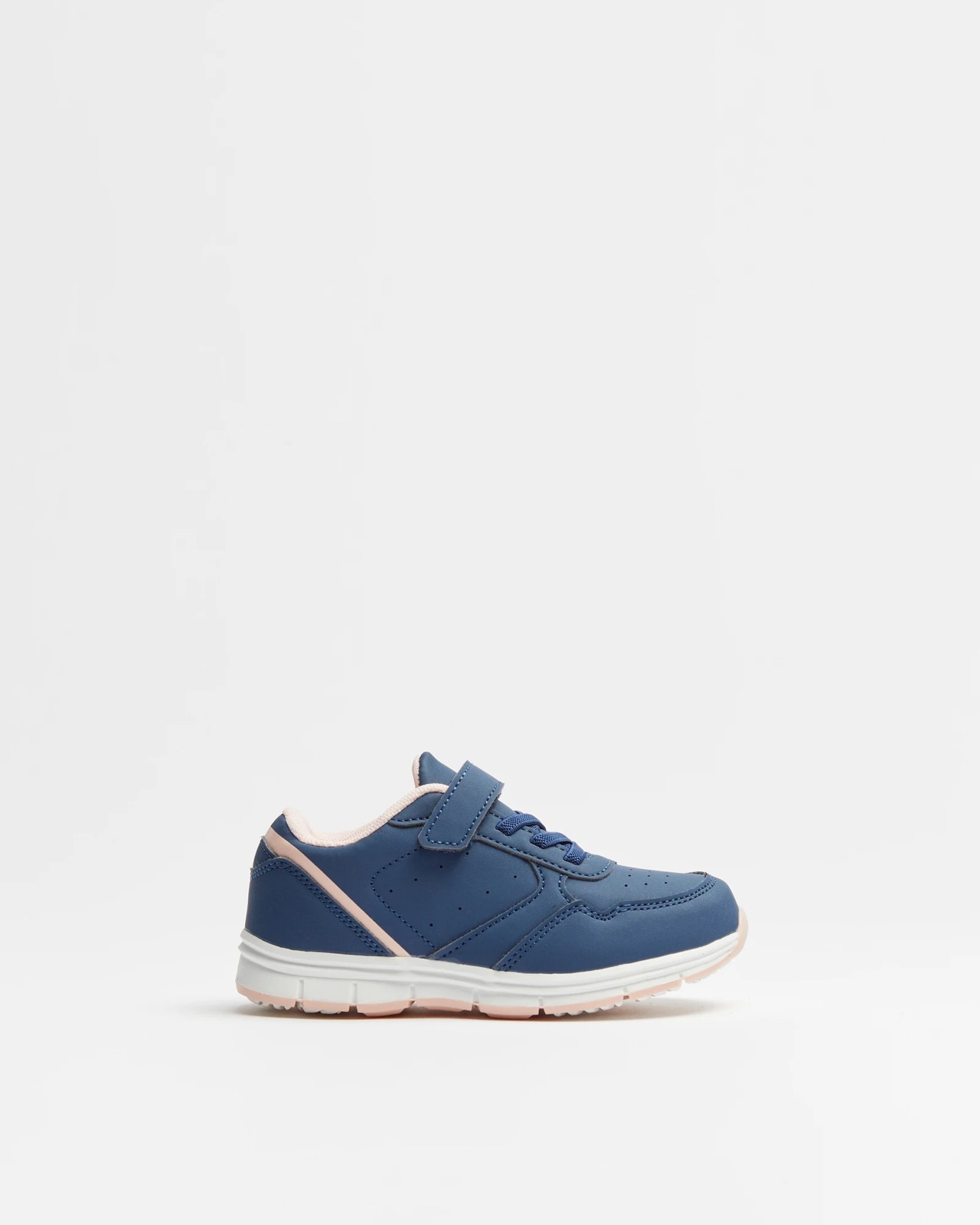 Step into comfort and style with our Girls Junior Sneakers. Made with a chic synthetic leather-look upper, these sneakers offer a fashionable round-toe design and easy three-eyelet elastic laces paired with a convenient fastening strap. The padded footbed and collar ensure all-day comfort. Perfect for active days, these sneakers blend fashion and function effortlessly. Grab a pair today and let her step out in style!