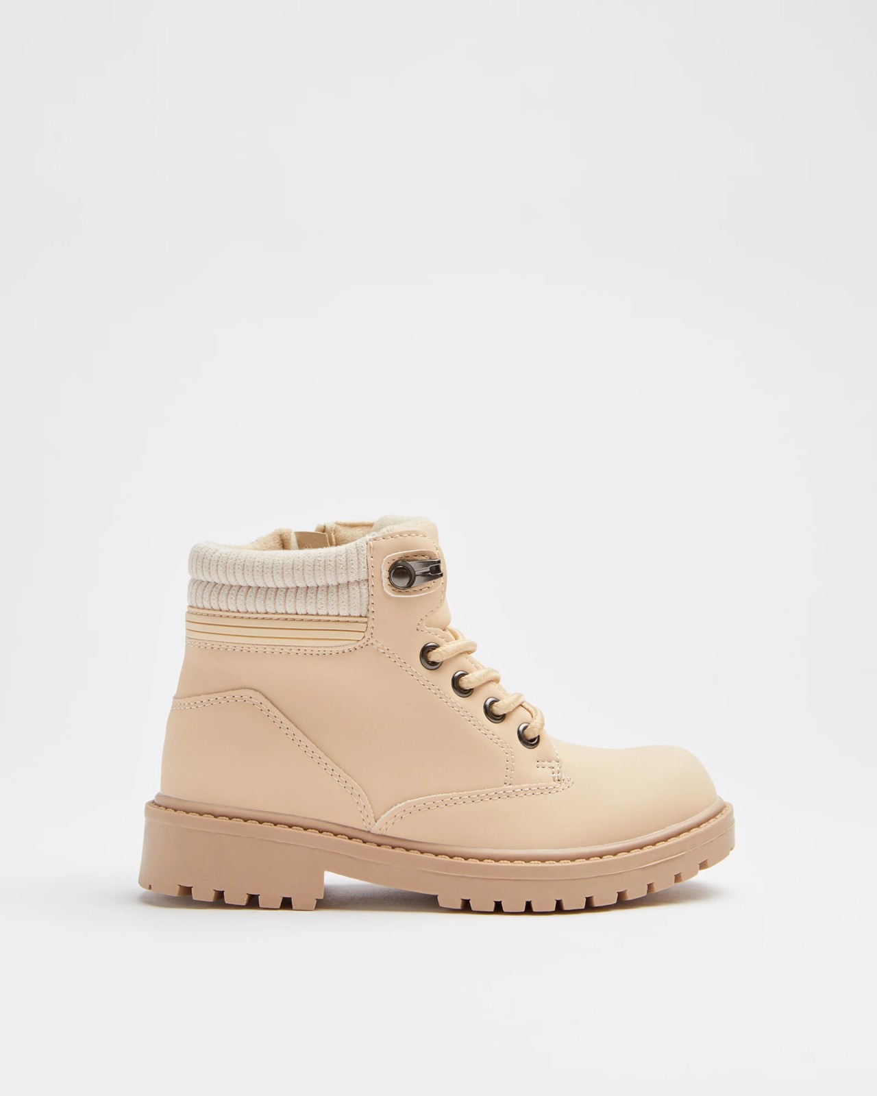 Step out in style with these Girls Junior Trucker Boots. The synthetic upper and padded footbed ensure comfort and durability, while the closed round toe and rib knit stitched padded collar add a touch of elegance. With an inner zip for easy wear and a cleated synthetic sole for extra grip, these boots are perfect for any adventure. Whether she's off to school or a weekend outing, these boots will keep her looking stylish and feeling ready for anything.