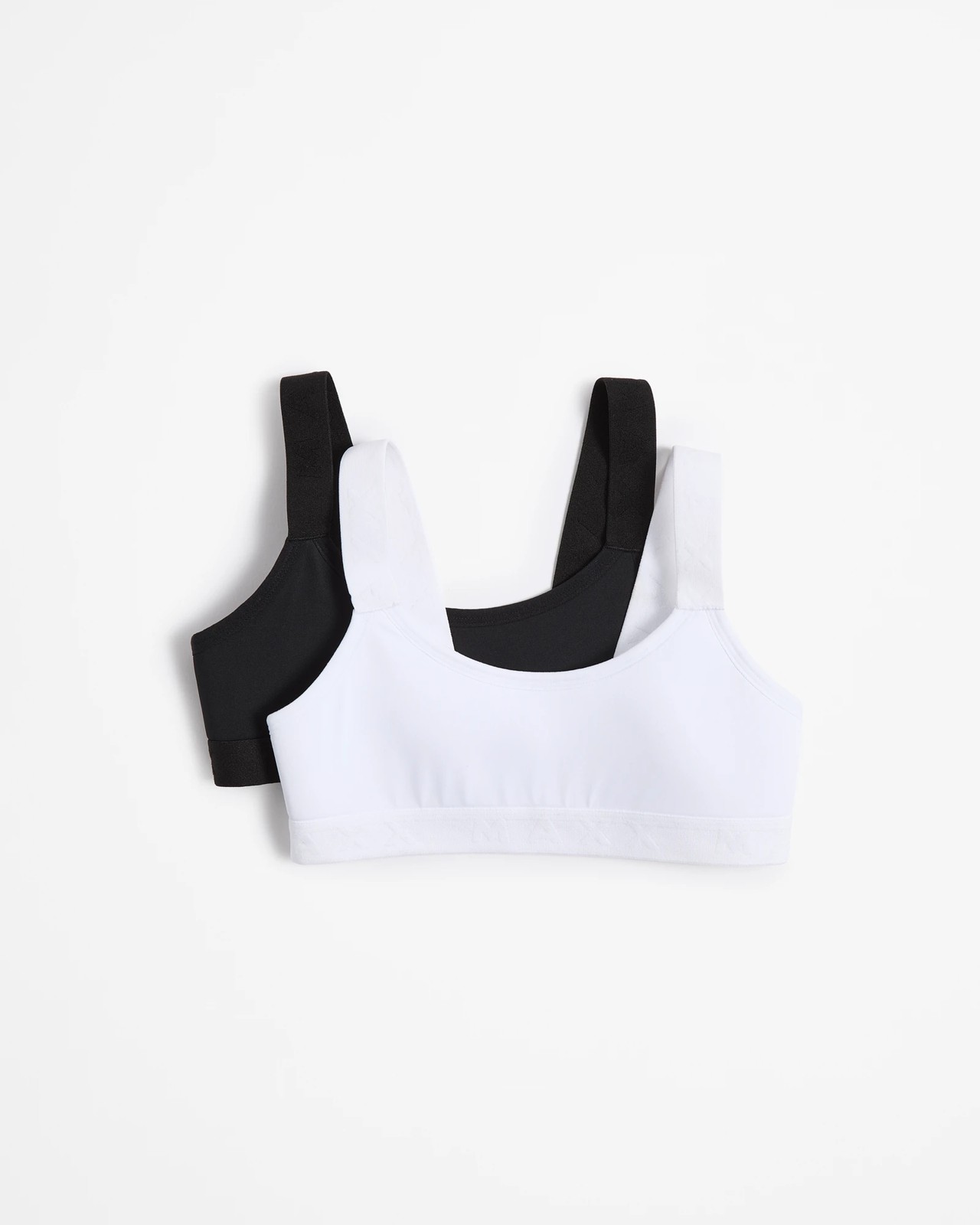 Discover the perfect combination of comfort and style with our Girls Micro Performance Crop Tops 2 Pack. Made from a stretchy nylon blend, these crop tops are designed to move with her. The Maxx elastic shoulder straps and waistband ensure a secure fit while the lightly padded and lined front provides extra comfort and coverage. Available in a set of two classic colours – white and black – these crop tops are a versatile addition to her wardrobe. Treat her to the ultimate in soft touch elastic and let her feel confident all day long. Don't miss out - grab this essential 2 pack today!